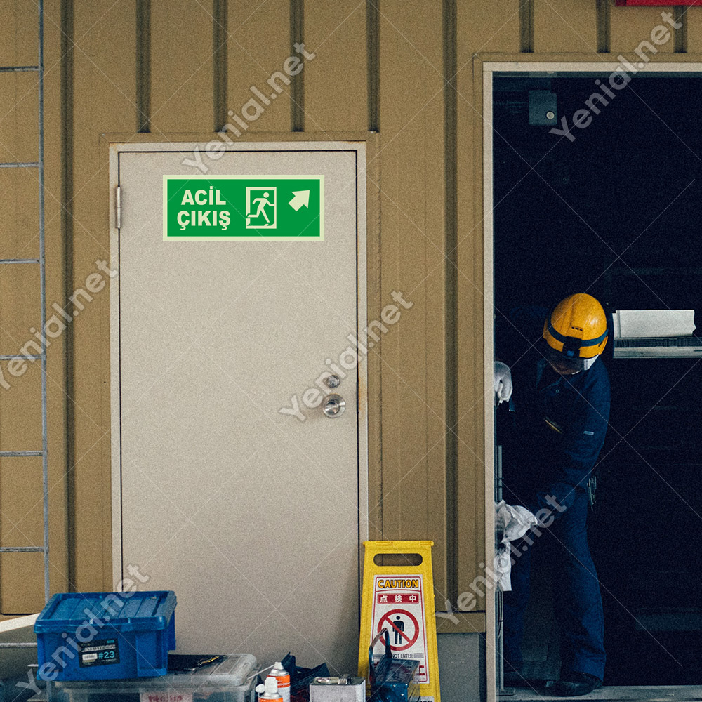 Acil Çıkış Sağ Üst Ok Lümen Folyo Levhası