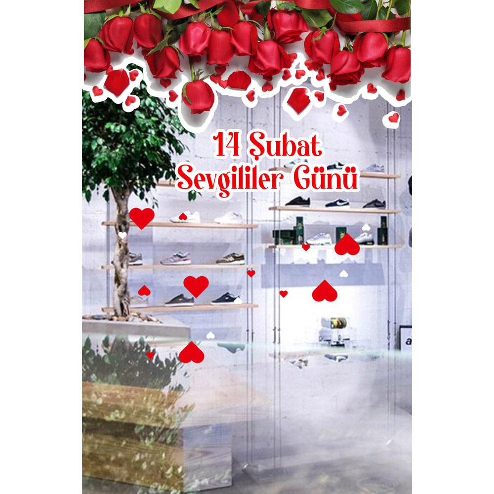Alta Bakan Güller Sevgililer Günü Cam Vitrin Oda Stickerı 70 CM