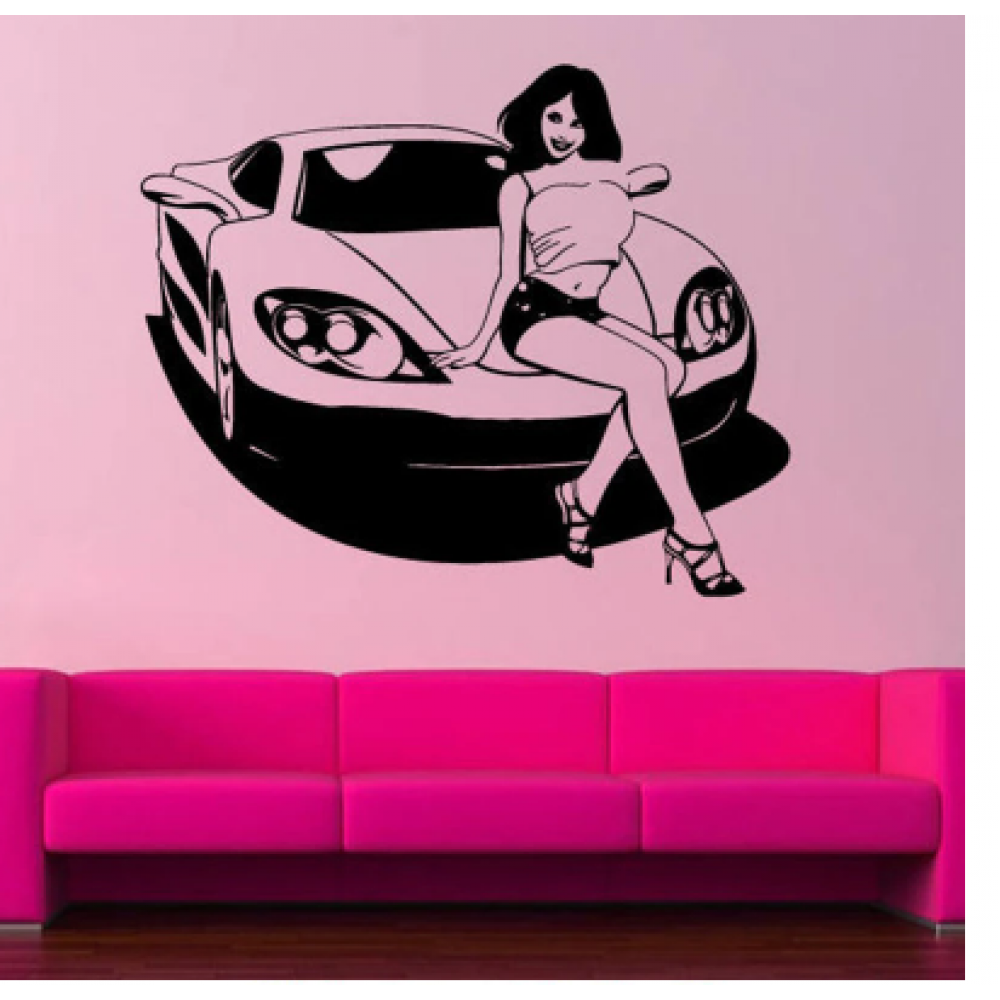 Araba Üzerinde Seksi Kadın Duvar Yazısı Cam Vitrin Sticker Yapıştırma