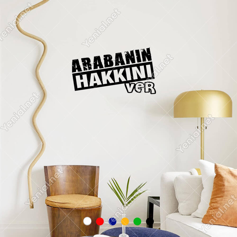 Arabanın Hakkını Ver Yazısı Araç ve Duvar İçin Sticker