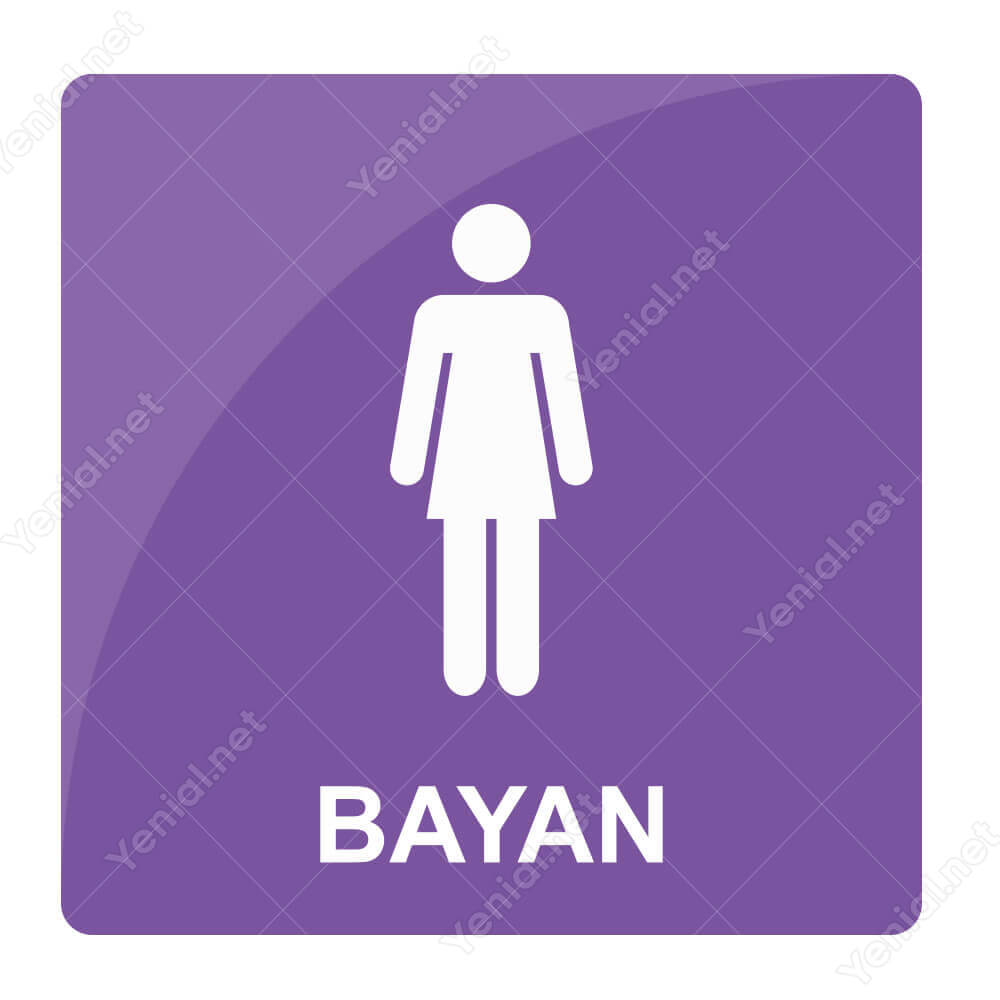 bayan wc açık mor şekilli yönlendirme levhası etiket