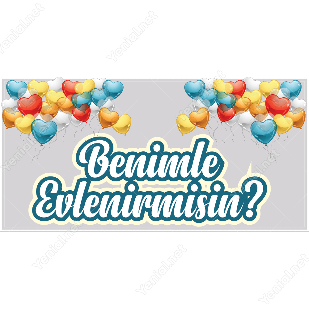 Beyaz Zeminli Balonlu Benimle Evlenir Misin Branda Afişi
