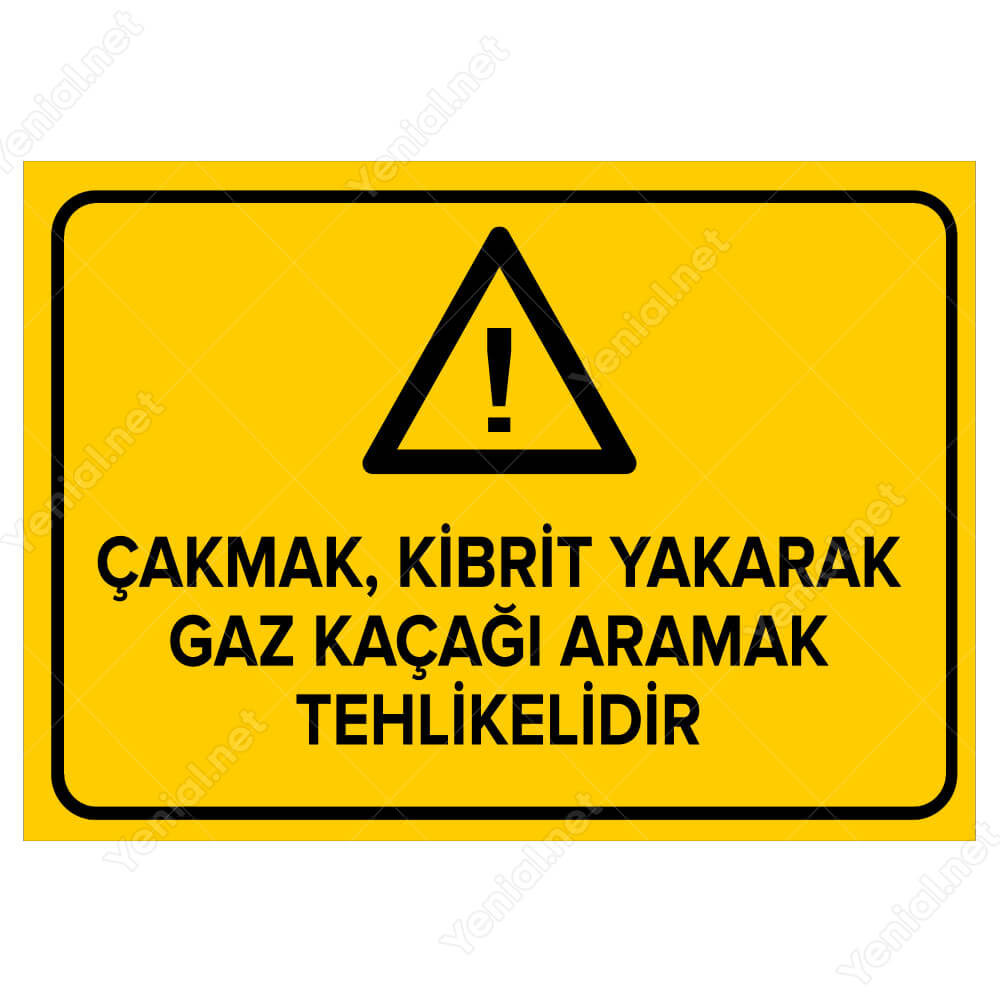 Çakmak Kibrit Yakarak Gaz Kaçağı Aramak Tehlikelidir Levhası