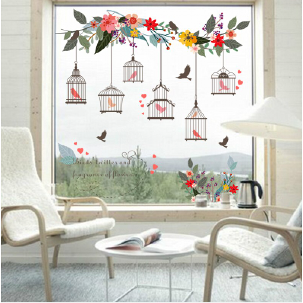 Çiçekçilere Özel Kuş Kafesi Sarmaşık Cam Vitrin Sticker Yapıştırma