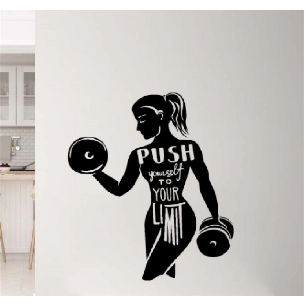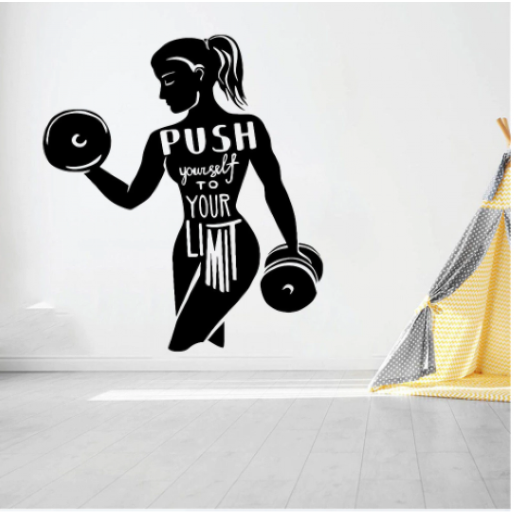 Dambıl Kaldıran Kadın Yazısı Spor Salonu Duvar Stickerı