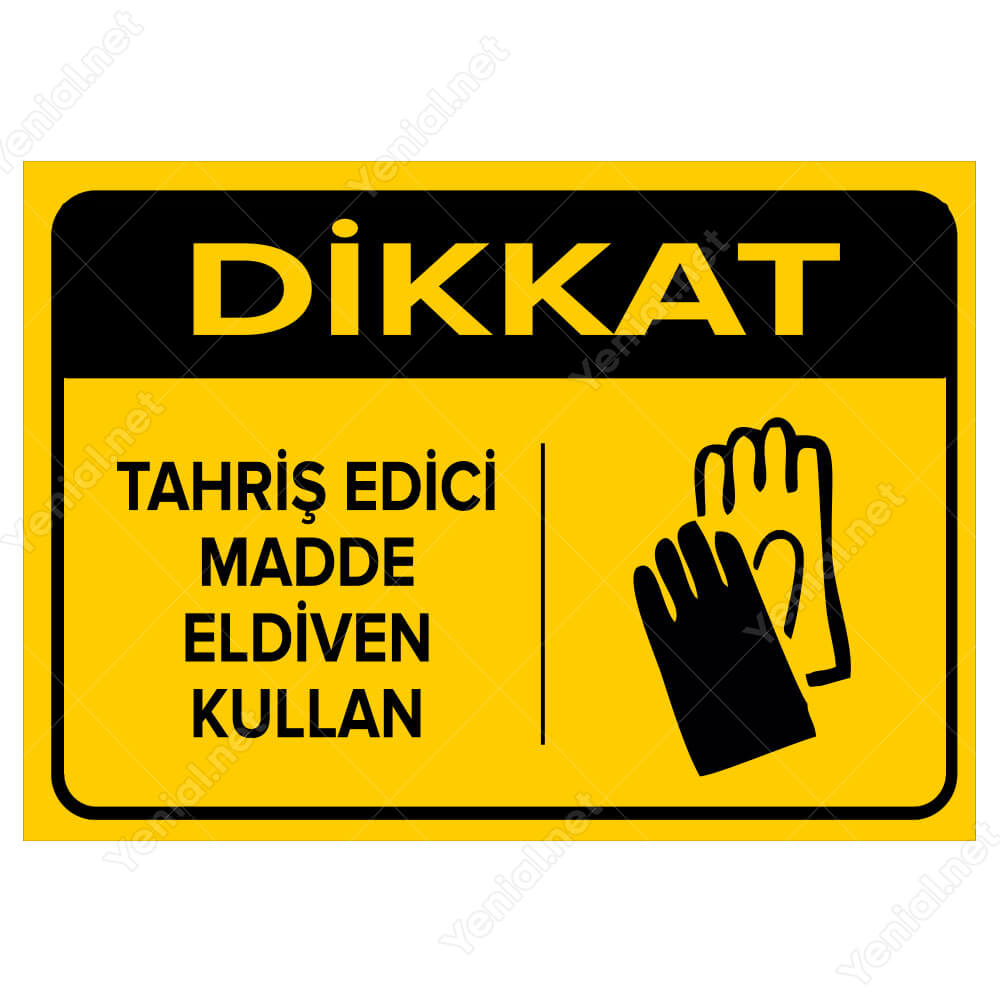 Dikkat Tahriş Edici Madde Eldiven Kullan Levhası