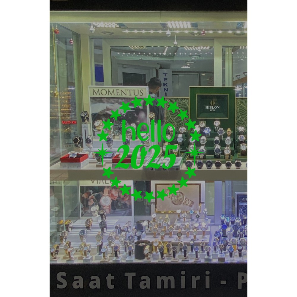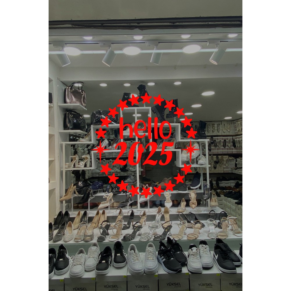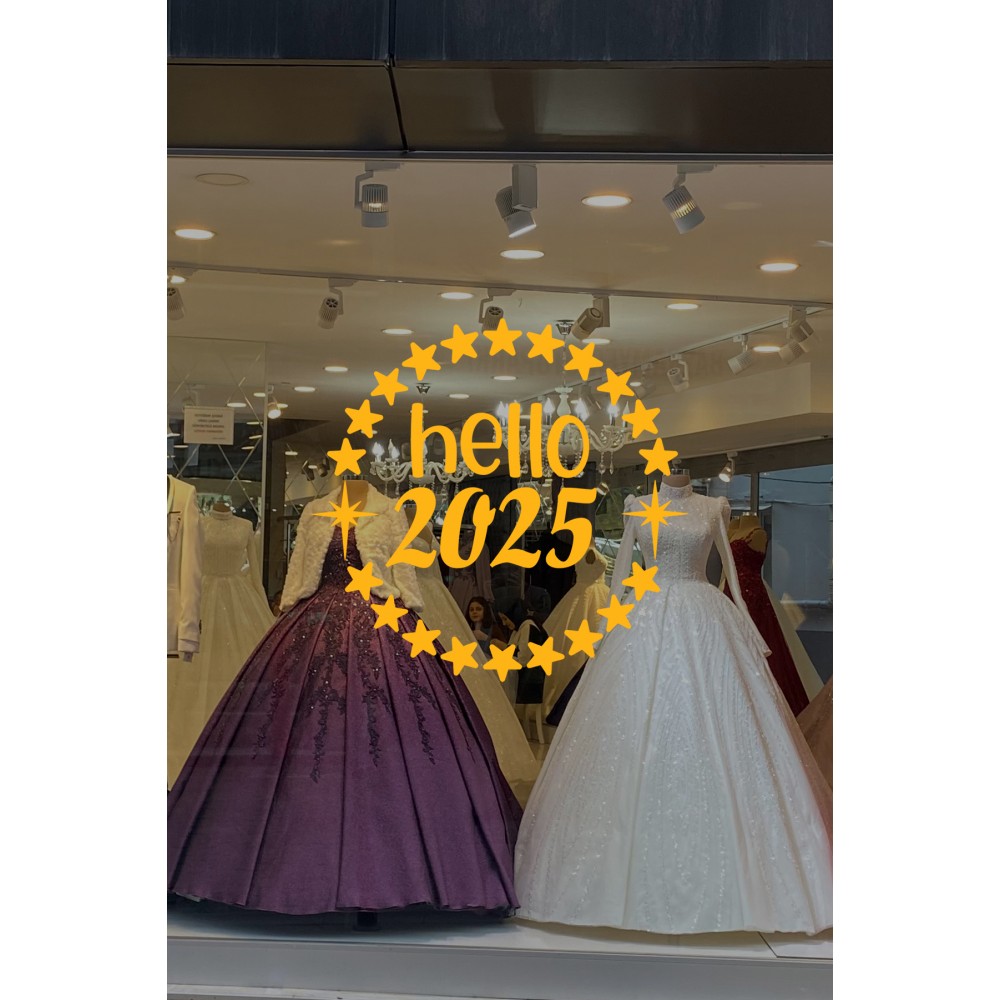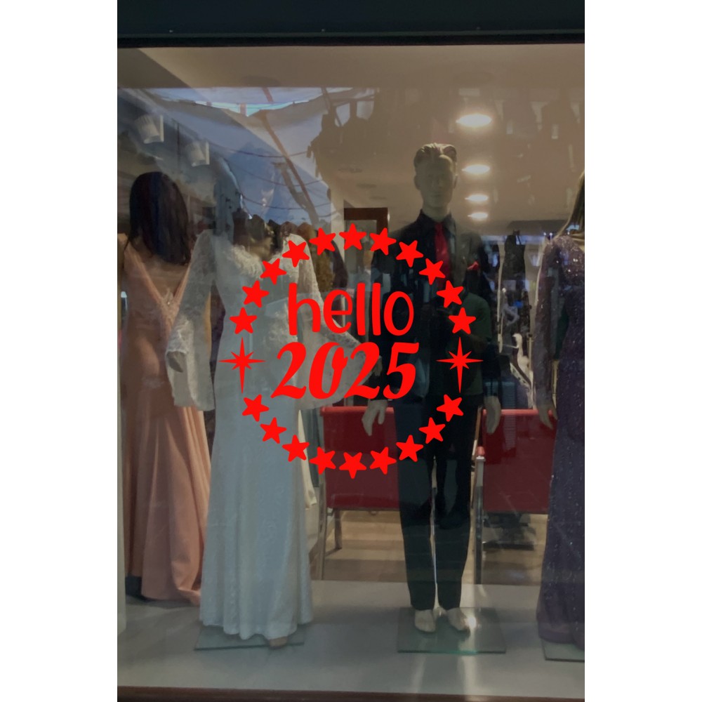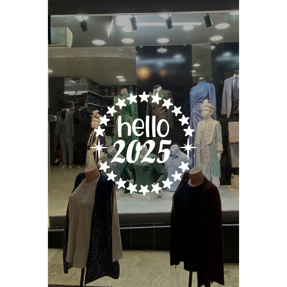 Dönen Yıldızlar ve Hello 2025 Yılbaşı Süslemeleri Yeni Yıl Yılbaşı Vitrin Cam Sticker