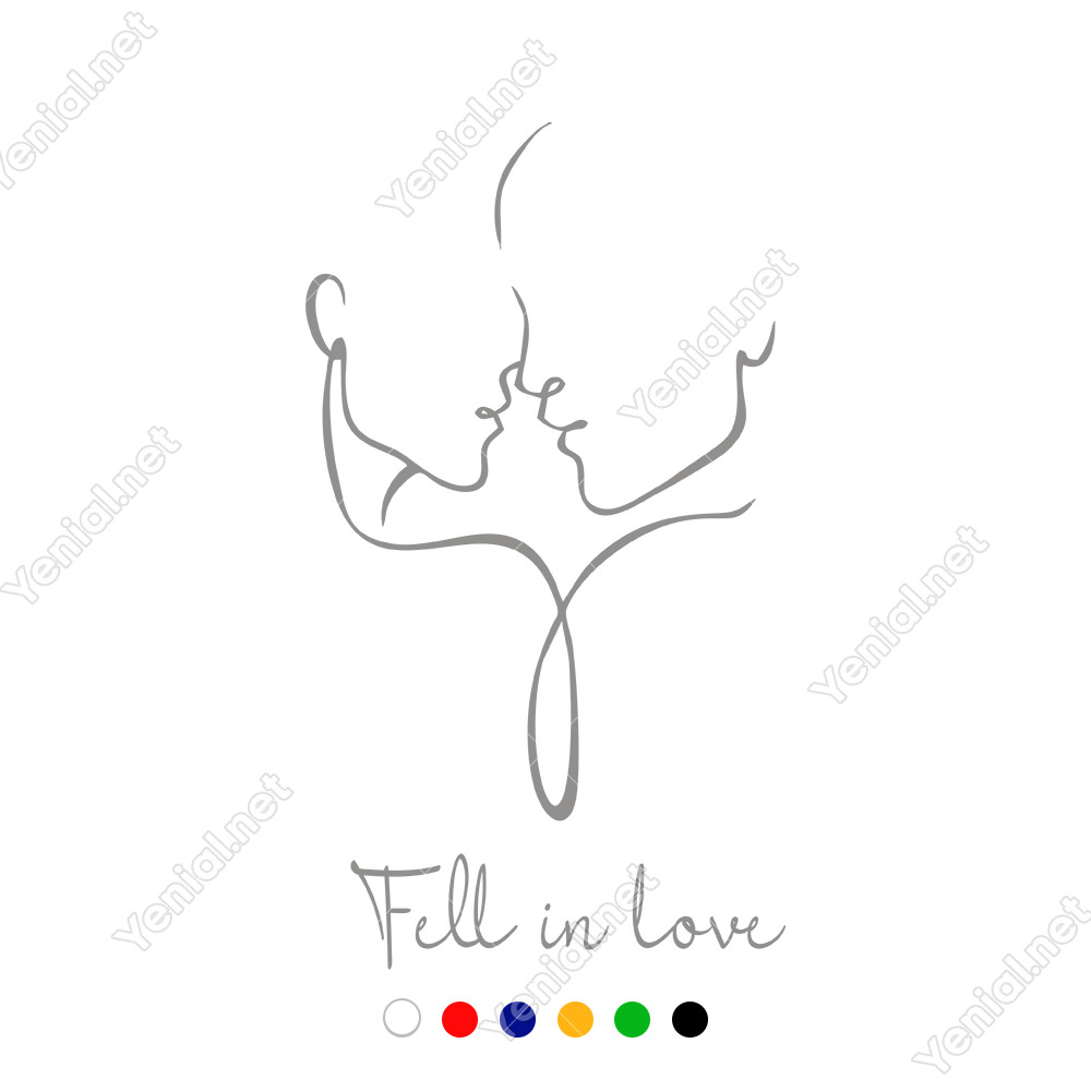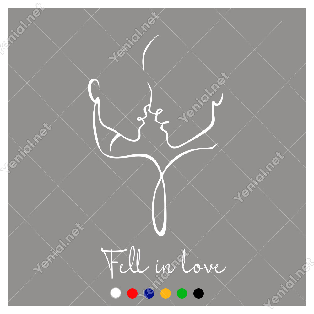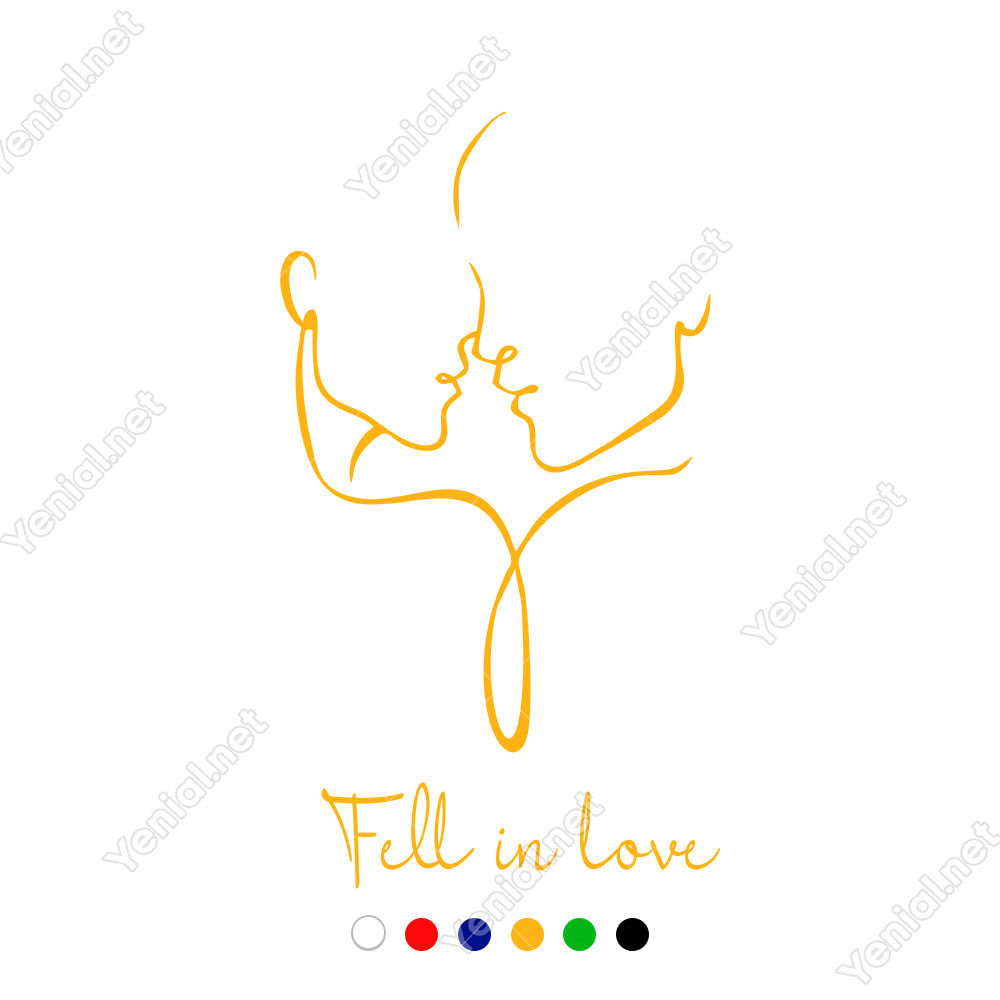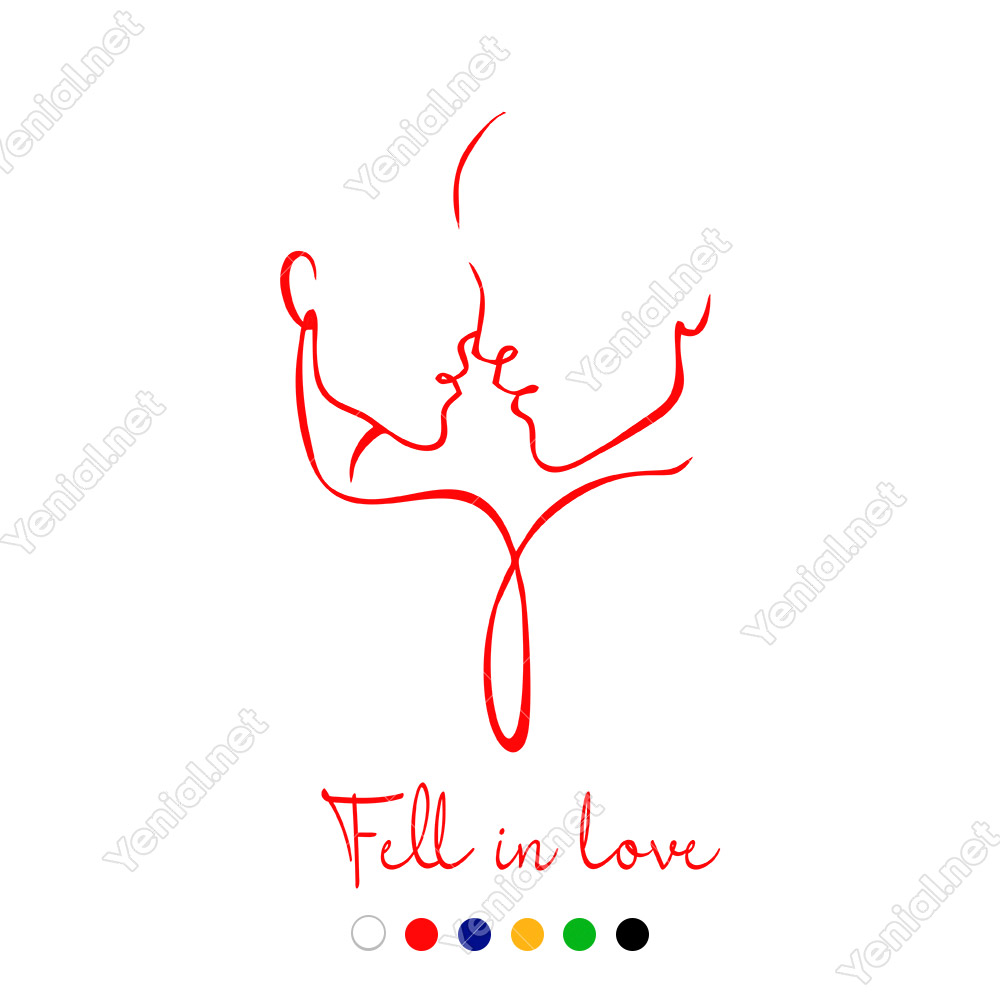 El Yazısı Fell İn Love Kadın Erkek Duvar Yazısı Sticker 60x33cm