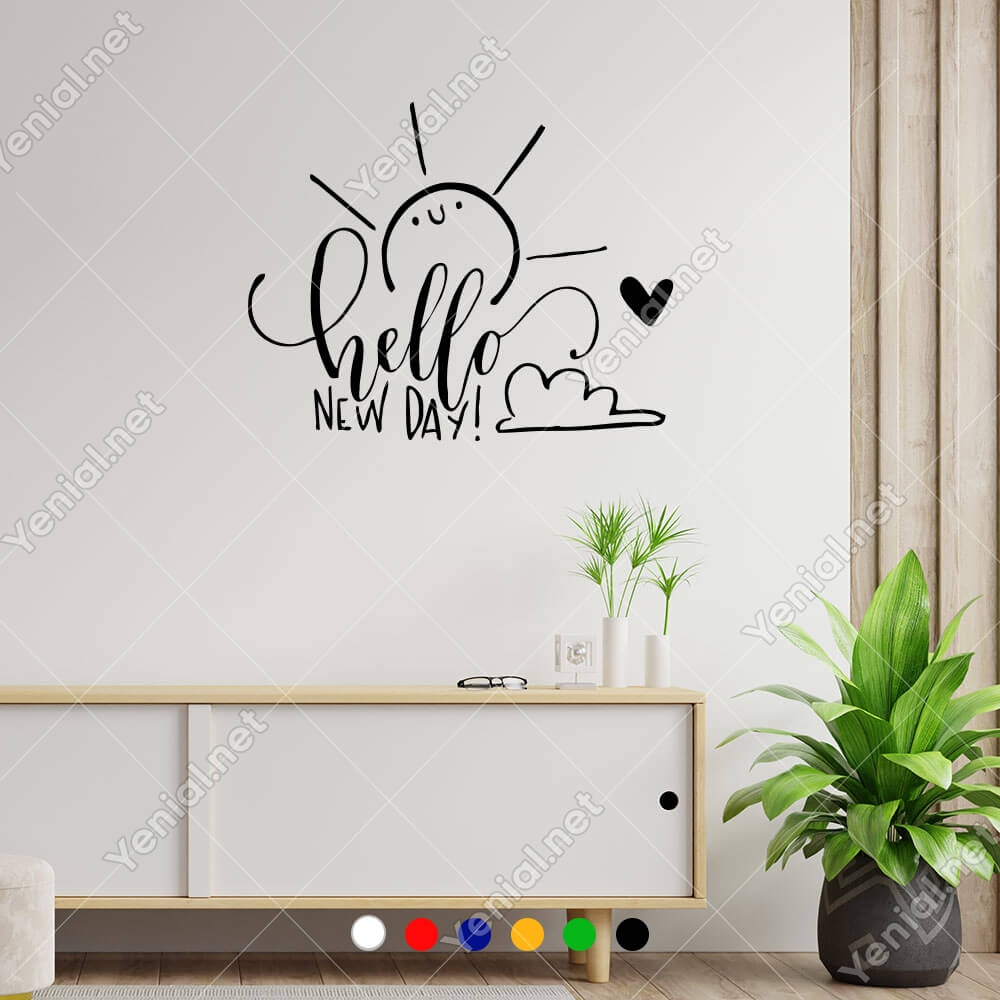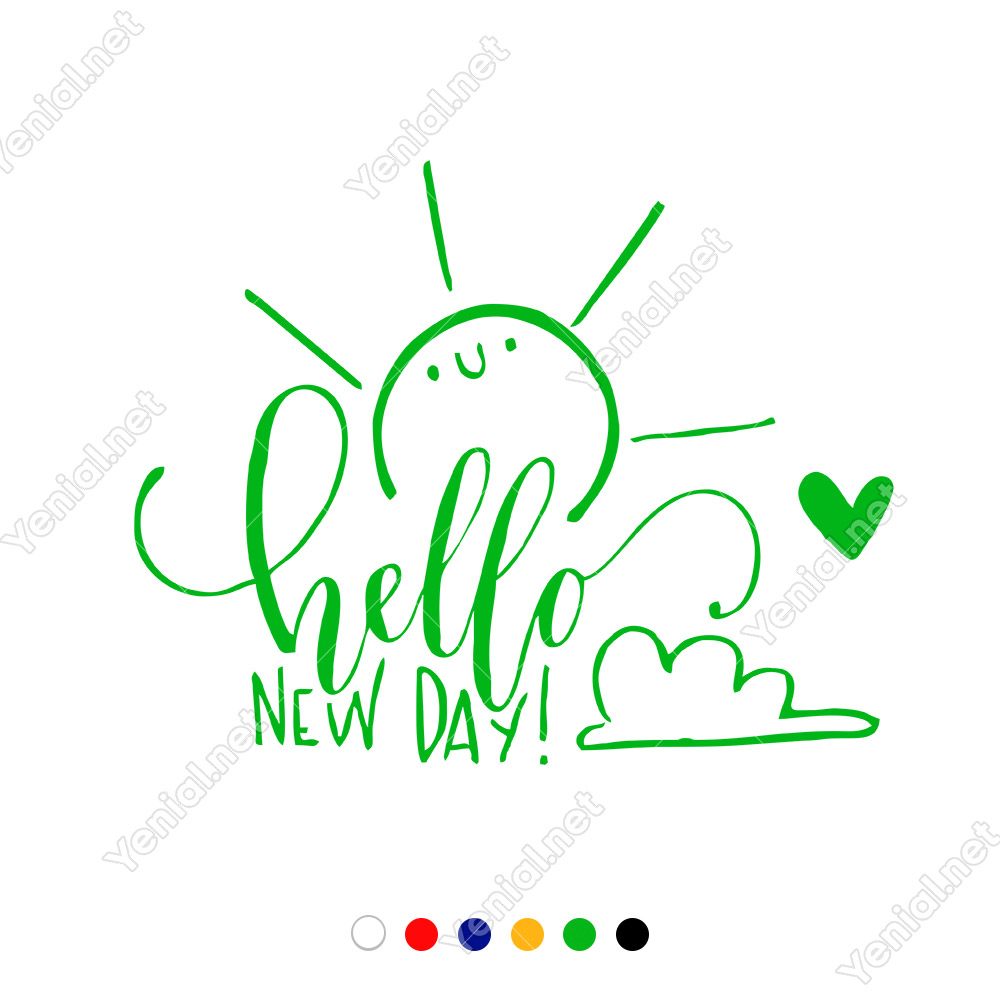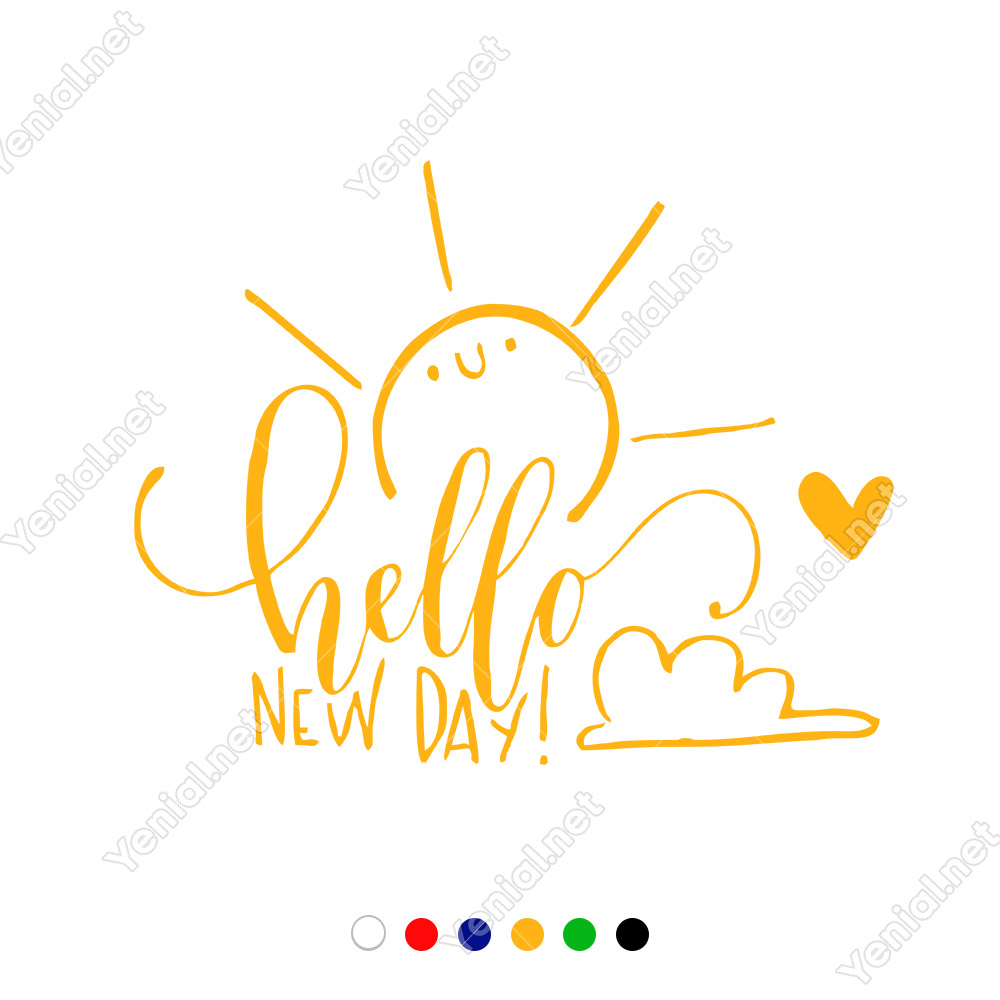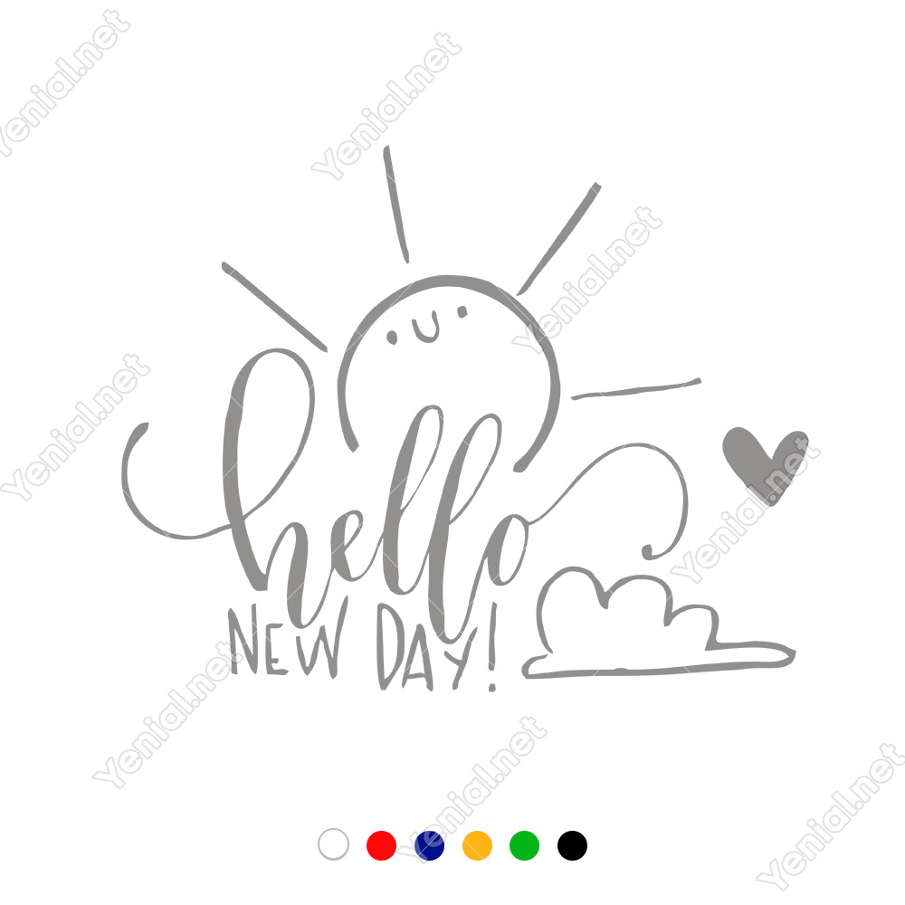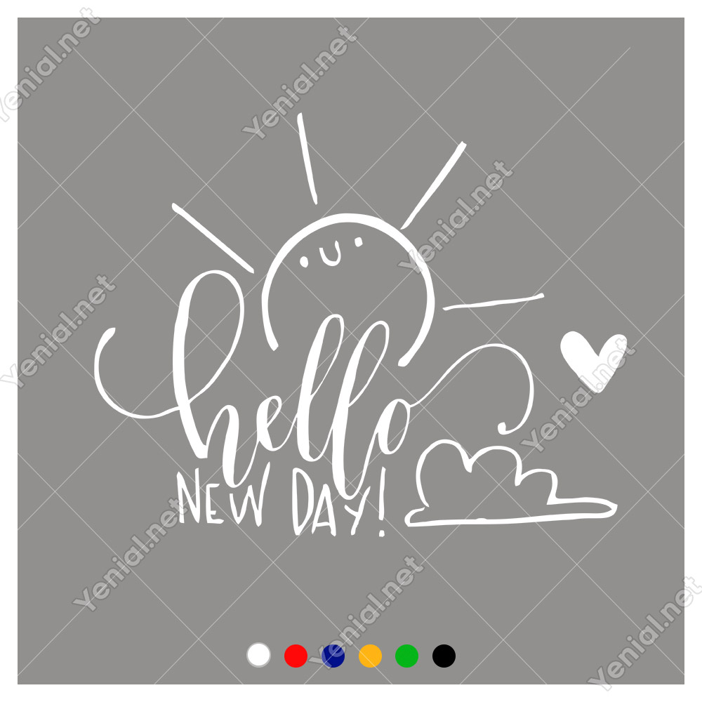 El Yazısı ile Sevimli Hello New Day Duvar Yazısı Sticker 60x48cm