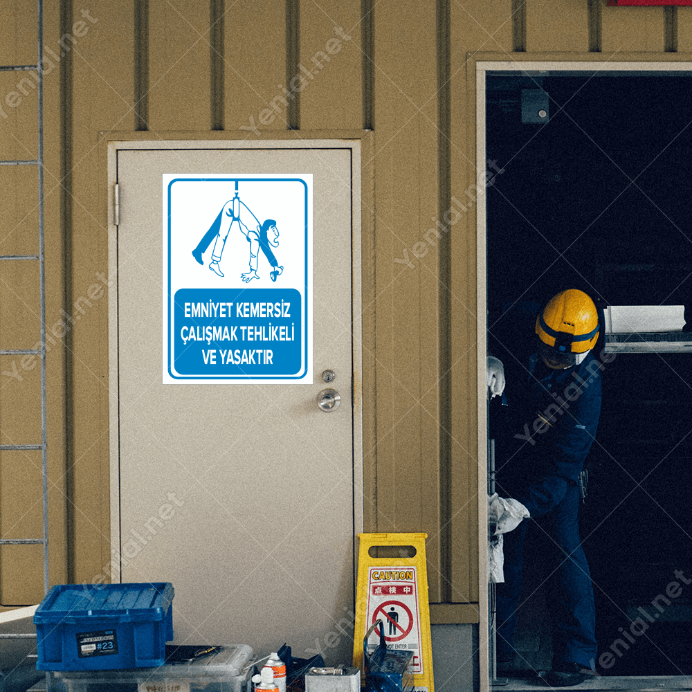 Emniyet Kemersiz Çalışmak Tehlike ve Yasaktır Levhası