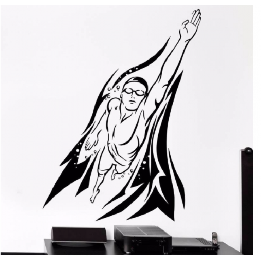 Erkek Yüzücü Yazısı Spor Salonu Duvar Stickerı