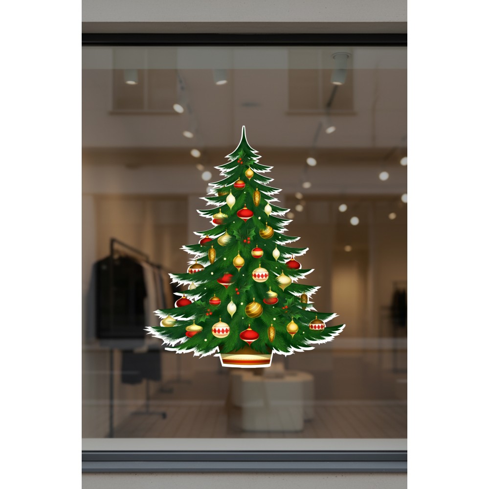 Yılbaşına Özel Kapı İçin Çam Ağacı Yılbaşı Süslemesi Cam Duvar Kapı Yılbaşı Stickerları