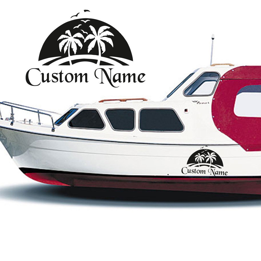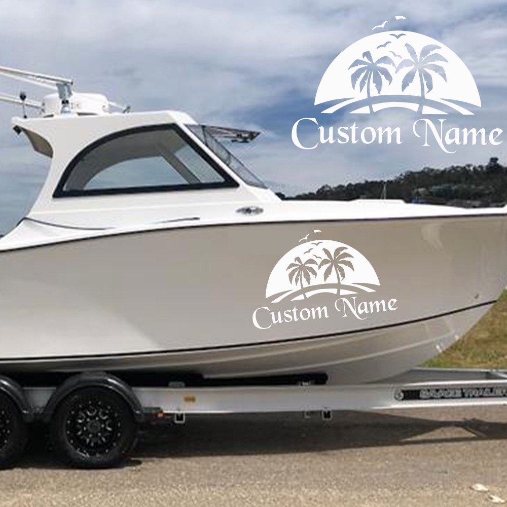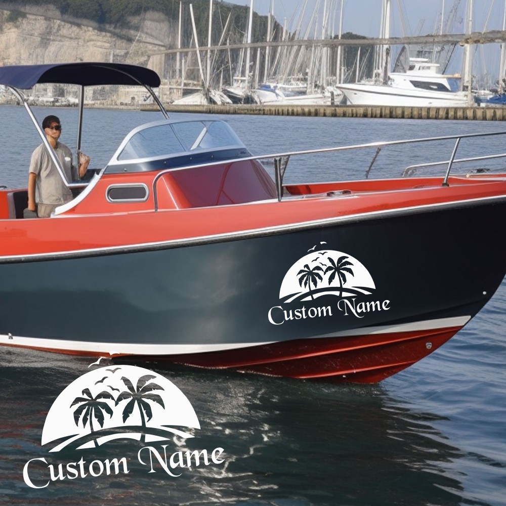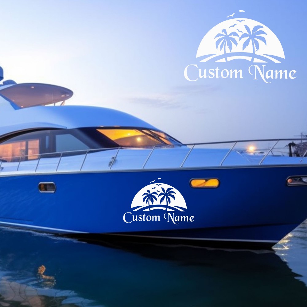 Gemiye Tekneye Kişiye Özel Tasarımlı Sticker Adada Palmiye Ağacı Tekne Sticker, Vinil Sticker, Tekne Sticker