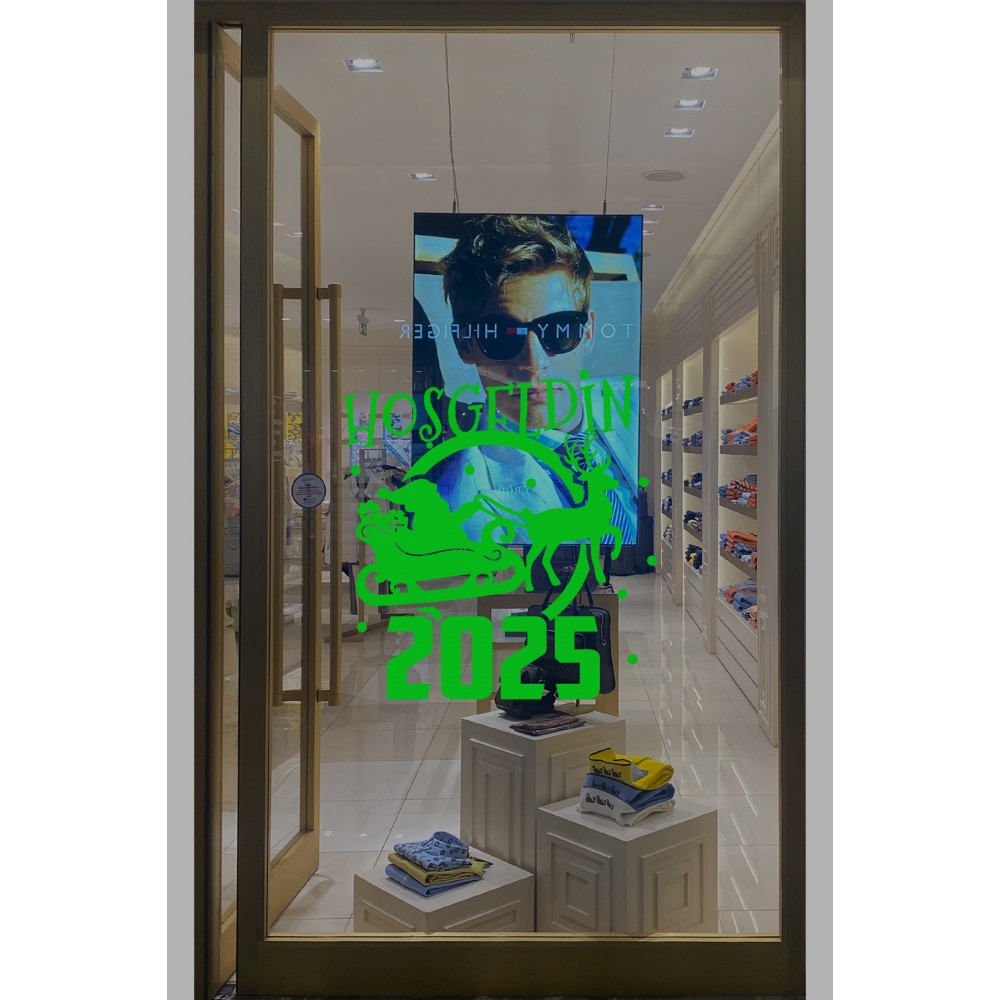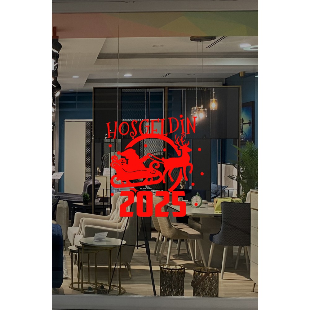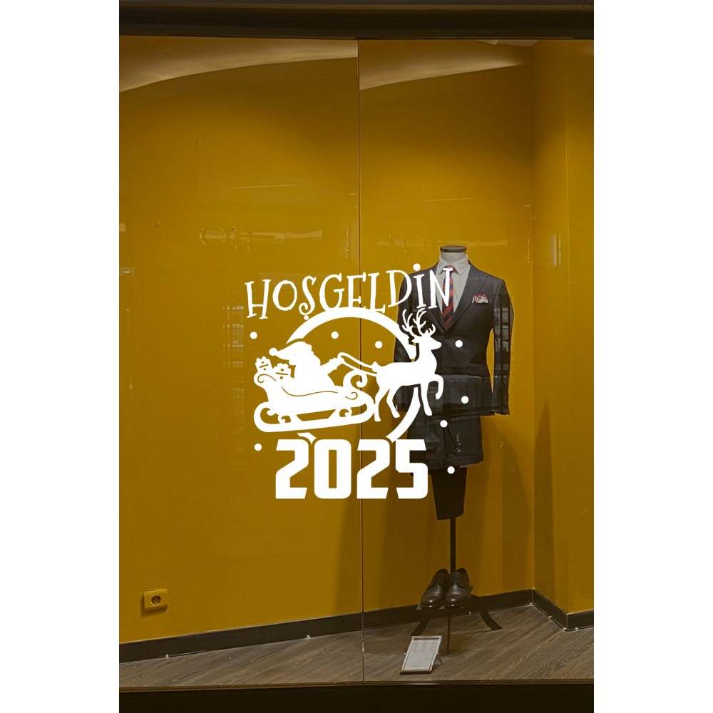 Geyik ve Noel Baba Kar Taneleri ve Hoşgeldin 2025 Yazısı Yılbaşı Süslemeleri Ev Vitrin Yılbaşı Stickerı