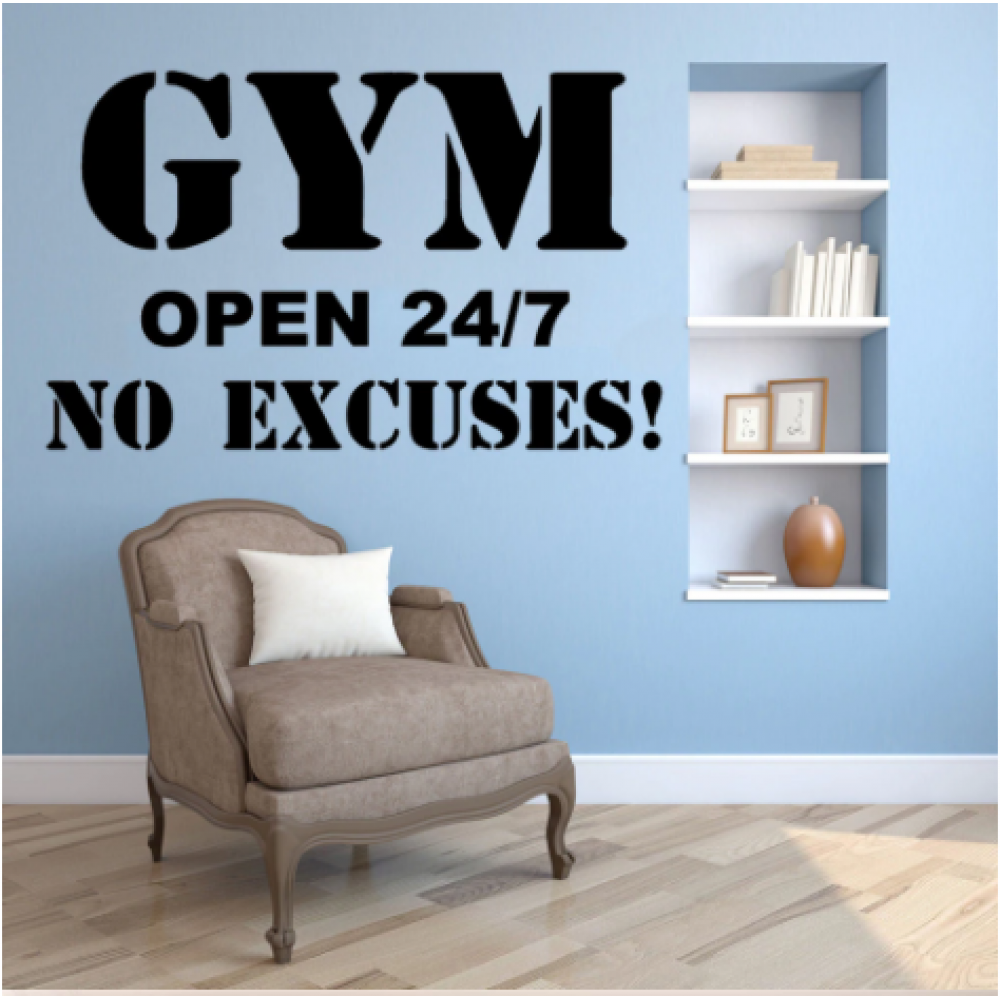 GYM OPEN 24/7 Yazısı Spor Salonu Duvar Stickerı