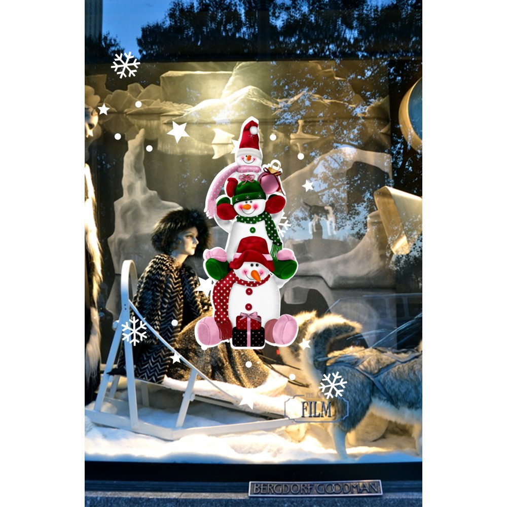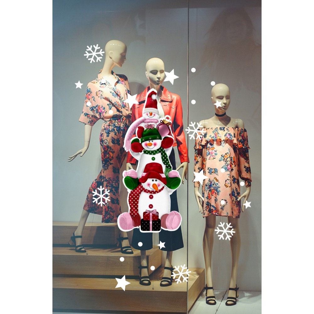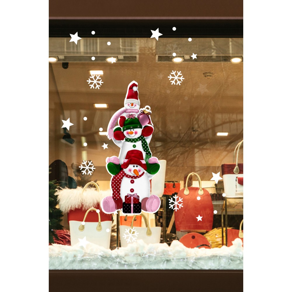 Hediye Paketli Sevimli Kardan Adamlar Yılbaşı Süslemeleri ve Kar Tanesi Ev Vitrin Yılbaşı Stickerı