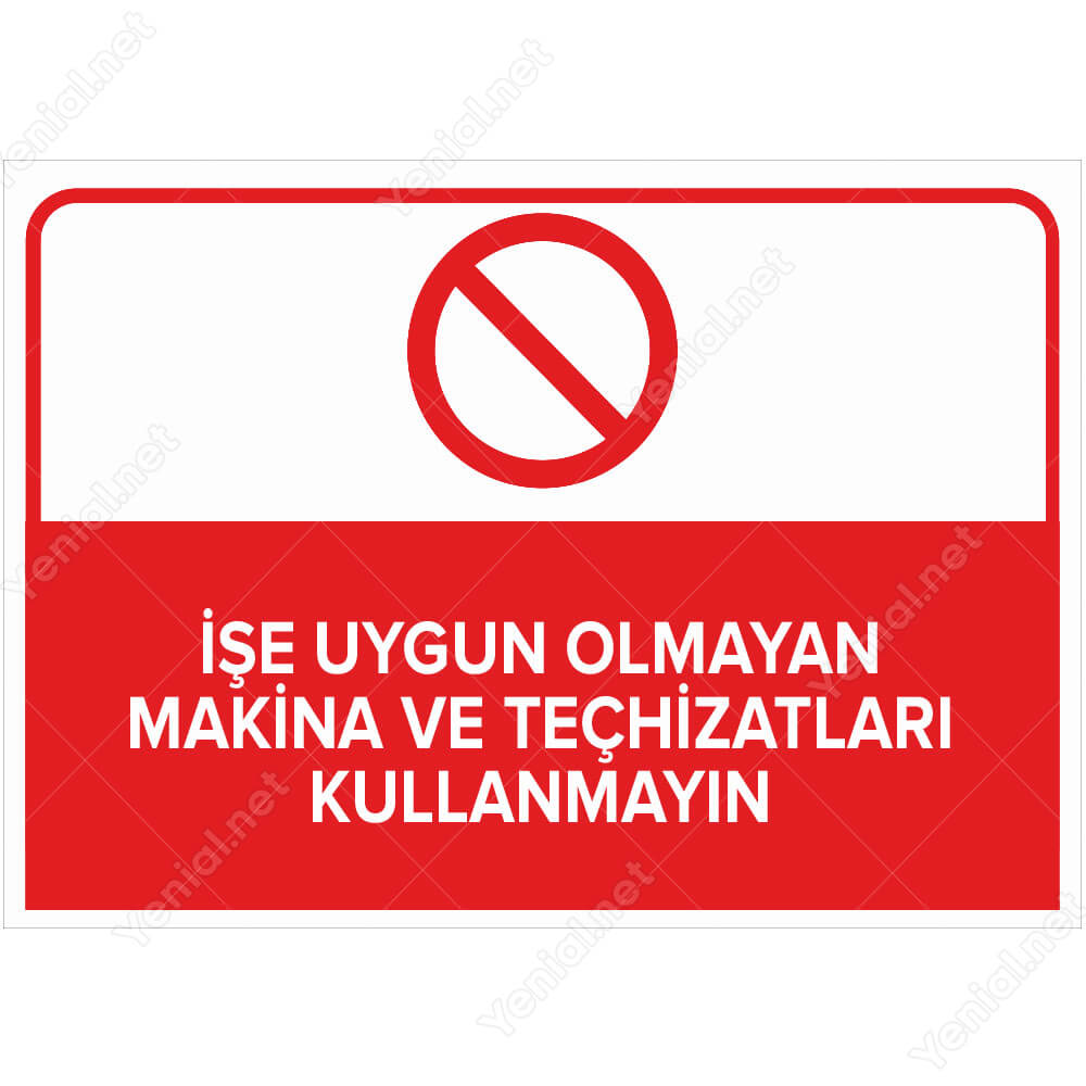 İşe Uygun Olmayan Makine ve Teçhisatları Kullanmayın Levhası