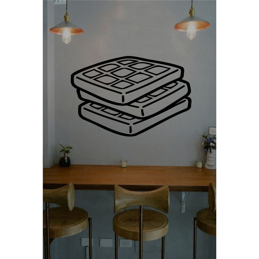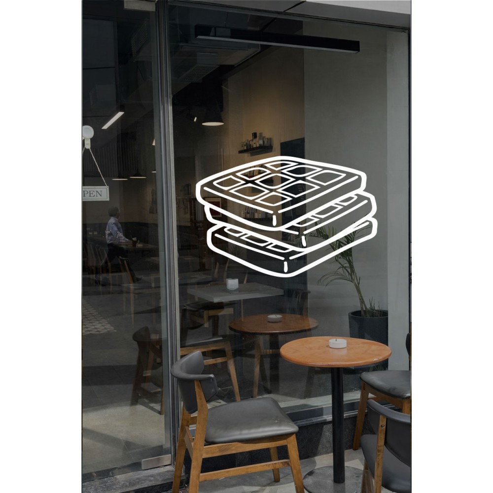 Kafe & Pastane Vitrin Sticker – Minimal Waffle Çizim Cam Dekoru
