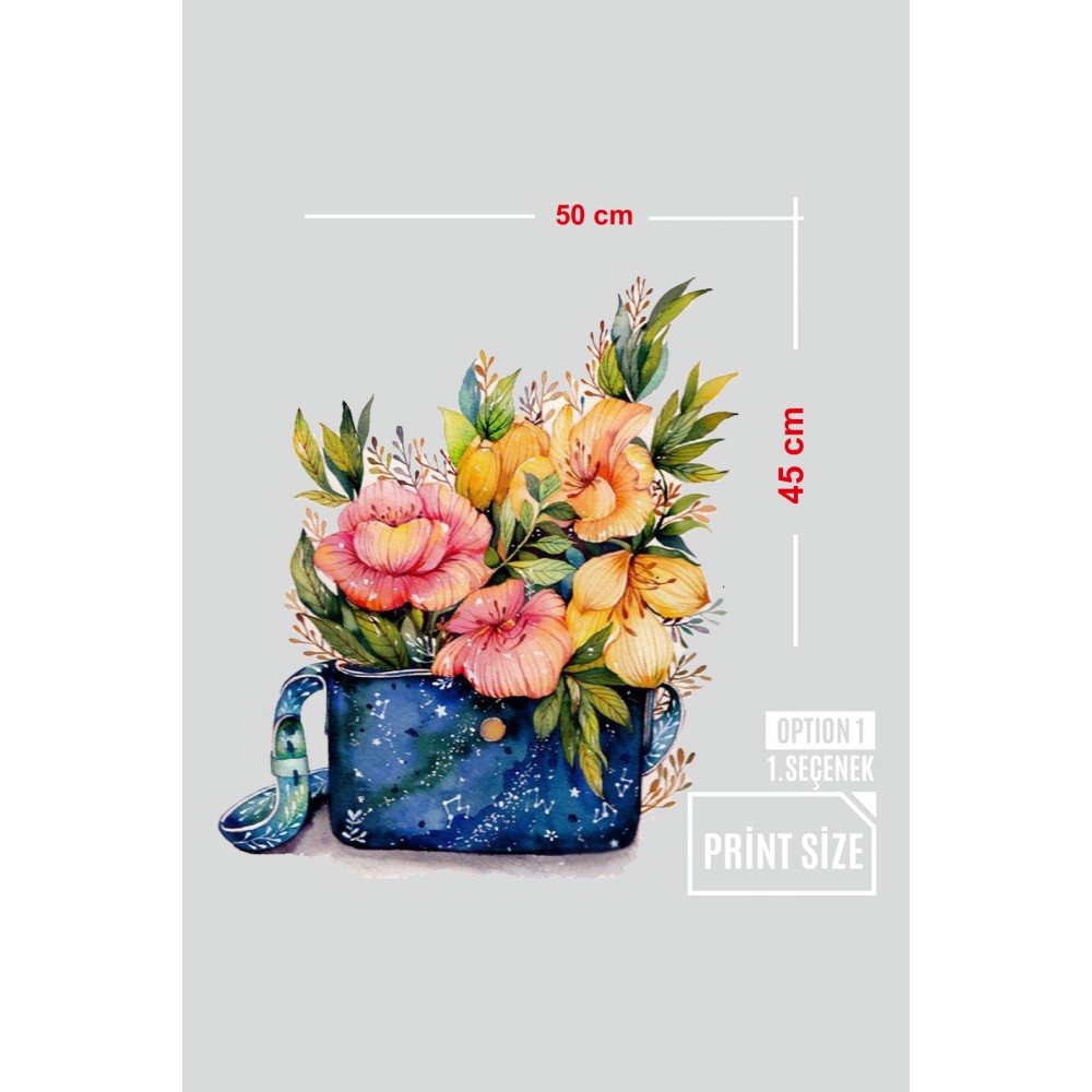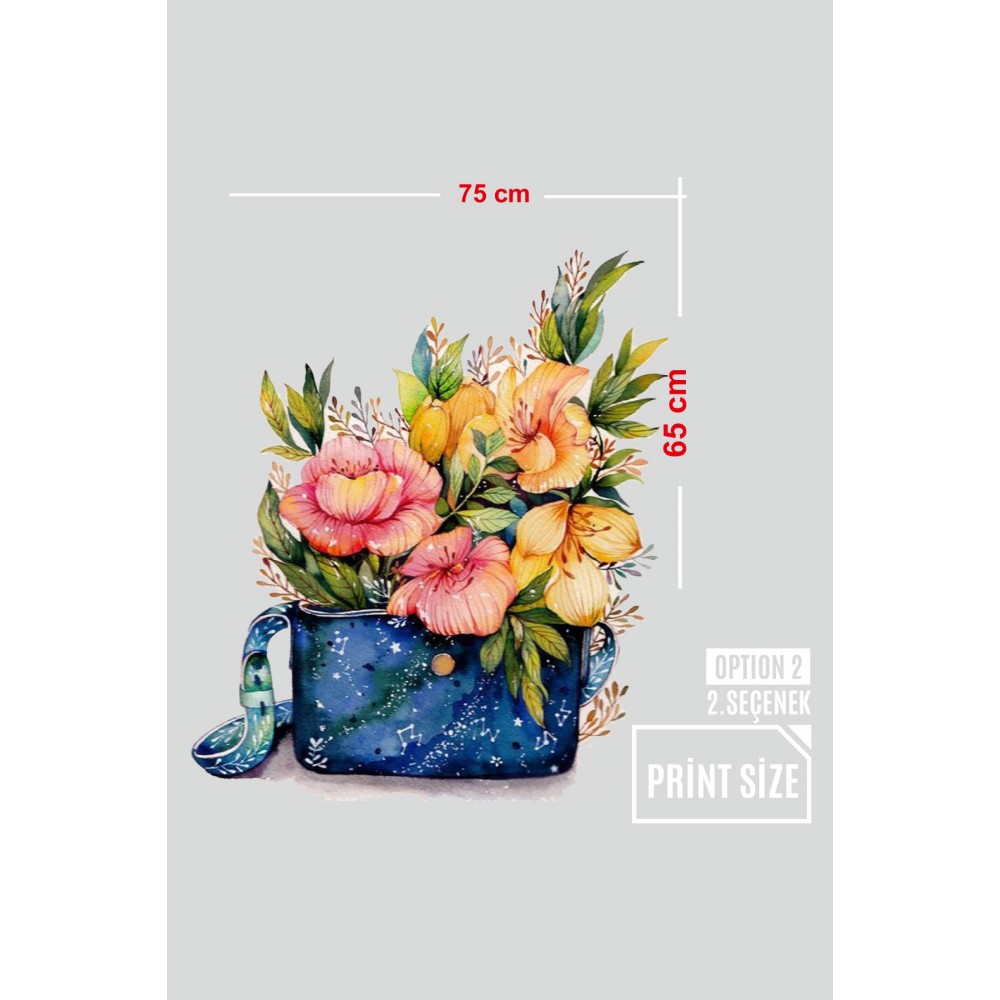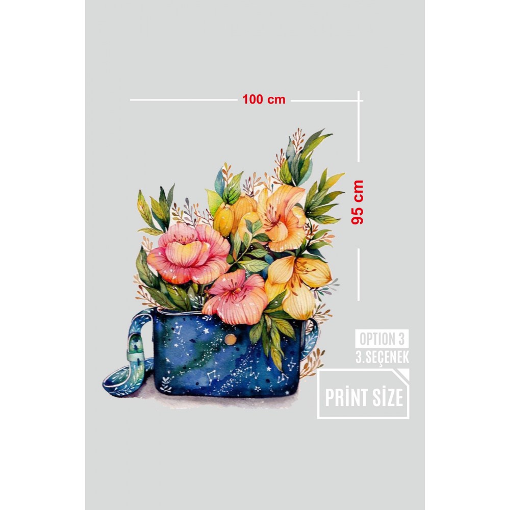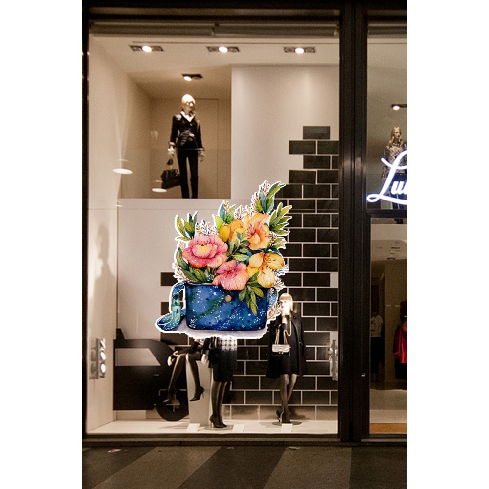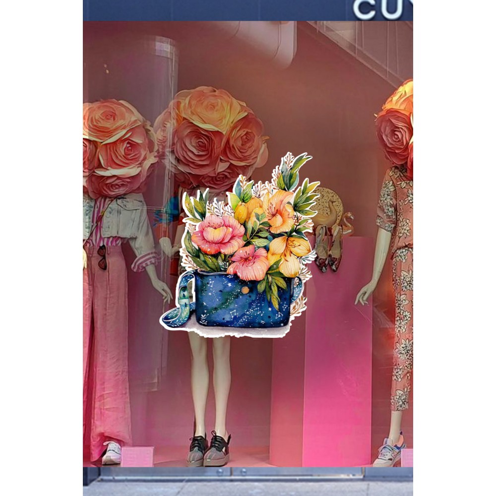Mavi Renk Sepet İçinde Çiçekler Vitrin Tacı ve Mağaza Vitrin Cam Stickerı