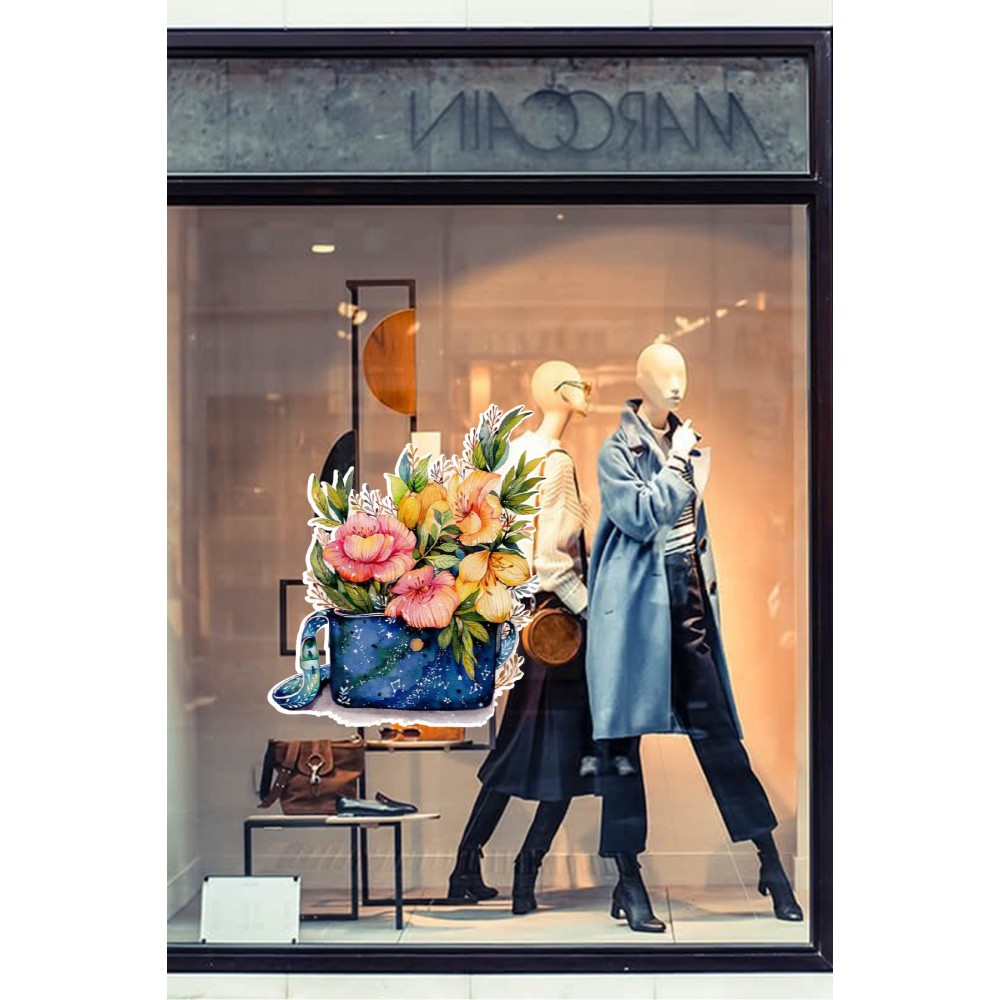 Yeşilin insanda yarattığı bahar huzurunu vitrinlerinize taşıyın. Sulu boya efektleriyle beraber zenginleştirilmiş kereviz çiçeği görseli vitrininizi renklendirin. Göz alıcı, canlı renklere sahip vitrin stickerları ile standarttan ayrılın ve akılda kalıcılığınızı arttırın. İnsanlar her gün binlerce mağazanın önünden geçiyor. Bu da binlerce vitrin görmeleri demektir. Peki bazı vitrinlerin diğerinden daha çok akılda kalması sizce tesadüf mü? Cevabını verelim. Hayır!