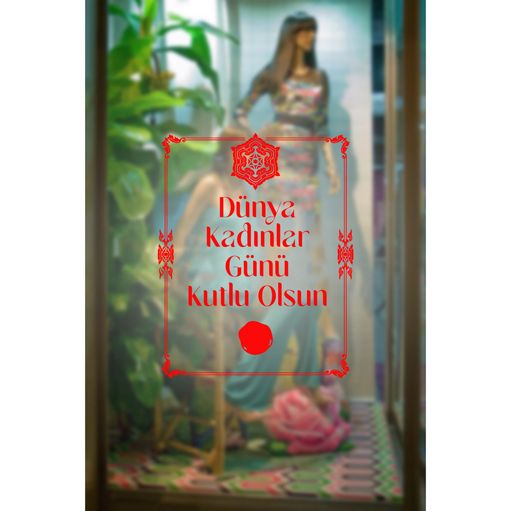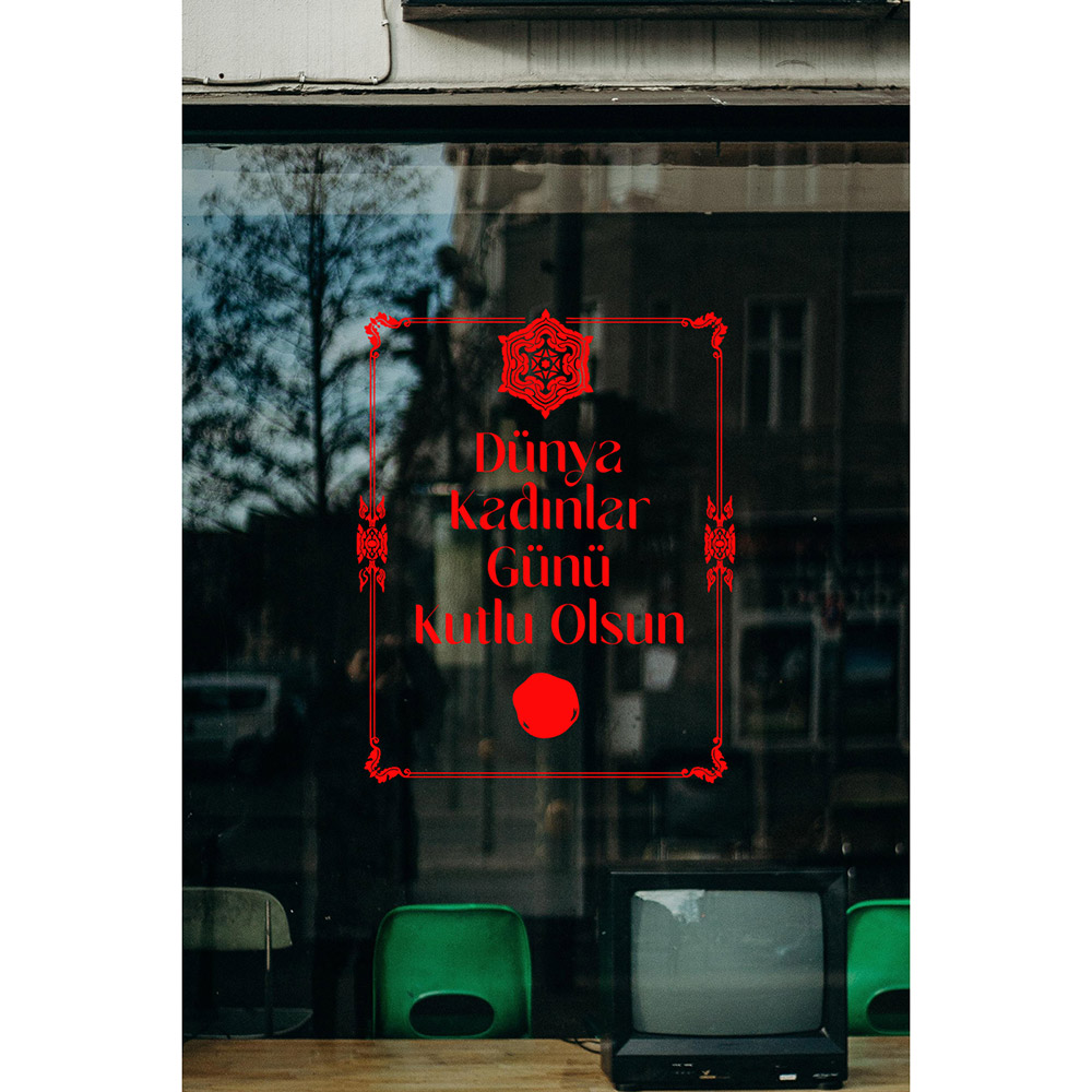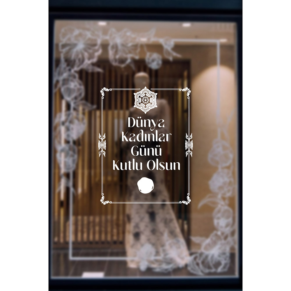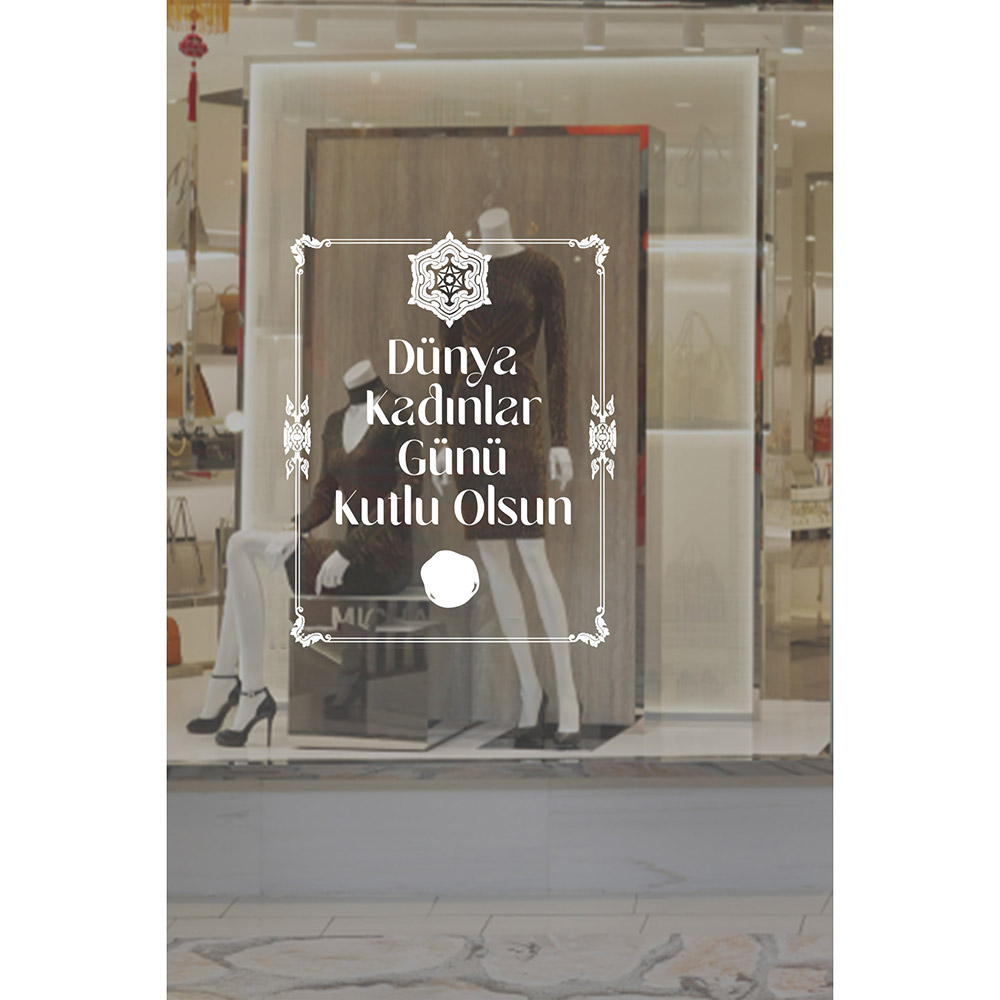 Mühür ve 8 Mart Kadınlar Günü Kutlu Olsun Yazısı Cam Vitrin Stickerı 60cm