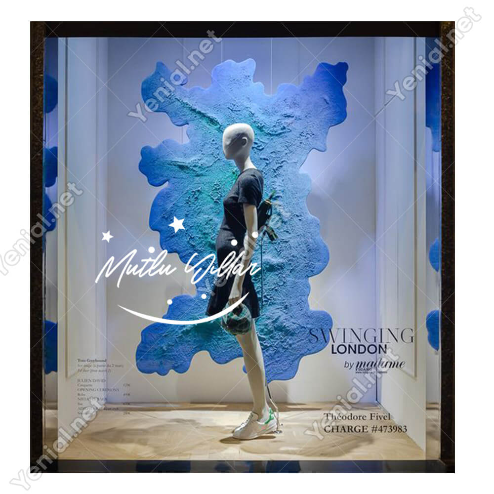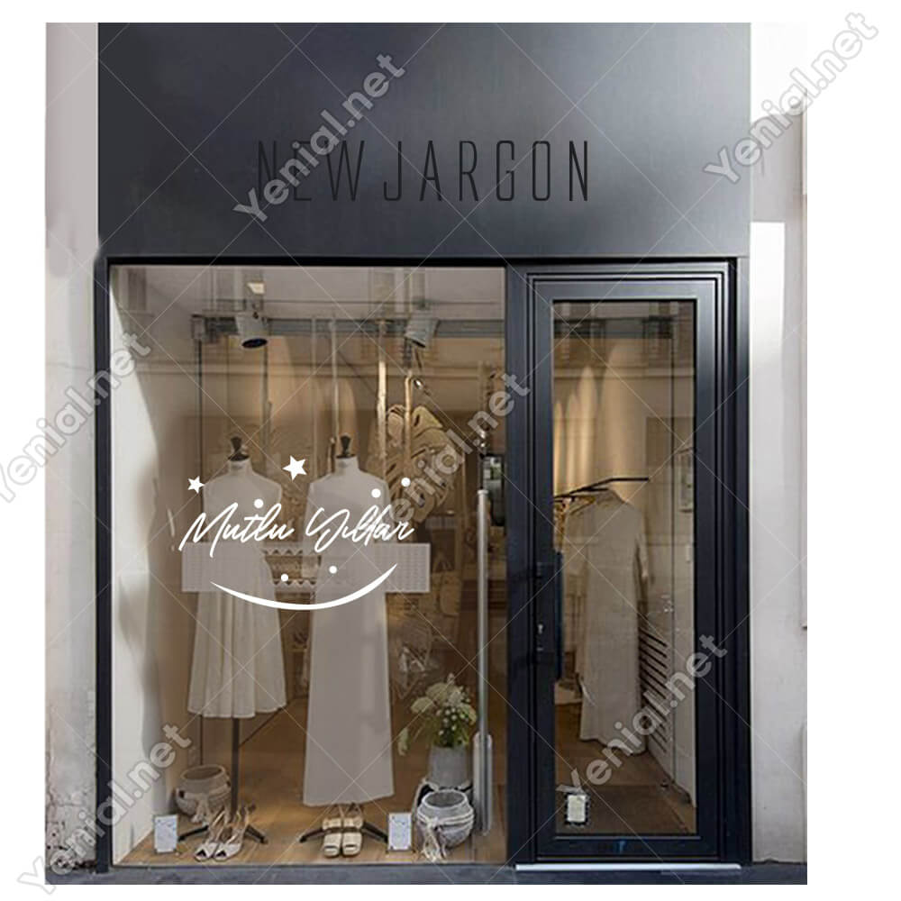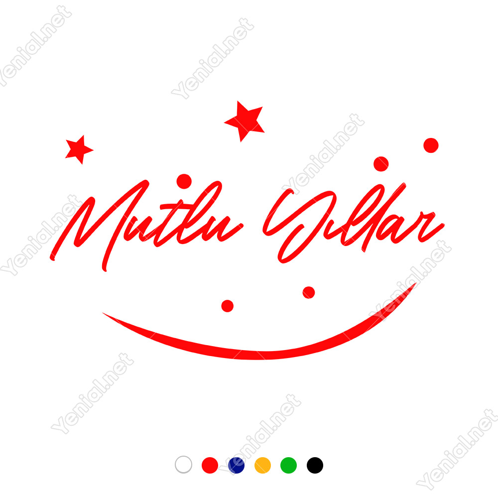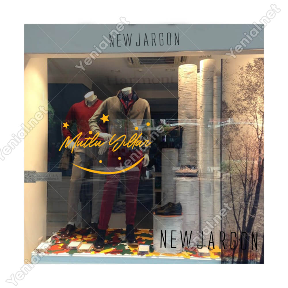 Mutlu Yıllar Yazısı ve Gülücük İşareti Simgesi Yılbaşı Cam Vitrin Mağaza Süslemeleri Ev Vitrin Yılbaşı Stickerı