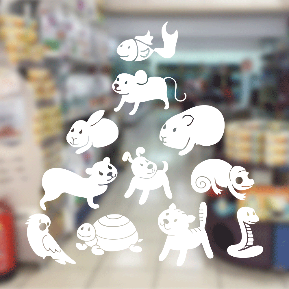 Petshop Ve Veterinerlere Özel Hayvanlar Alemi Sticker Yapıştırma
