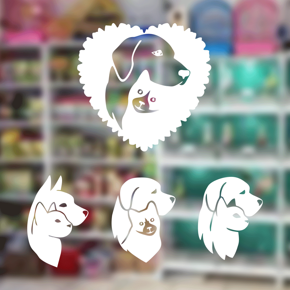 Petshop Ve Veterinerlere Özel Kedi Ve Köpek Silüetleri Sticker Yapıştırma