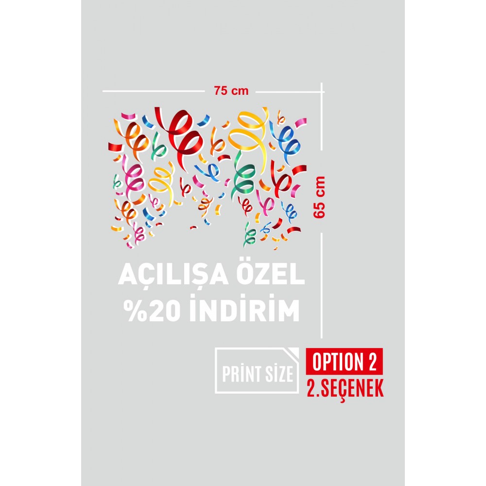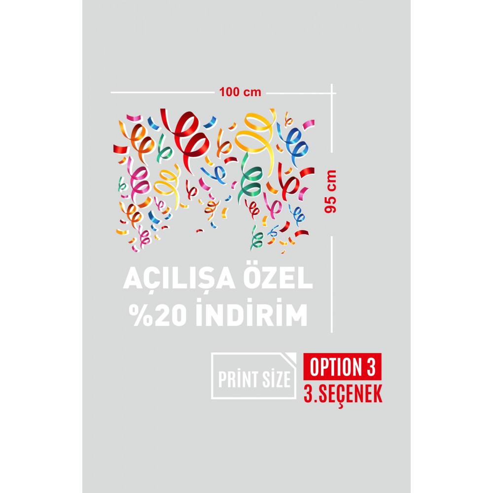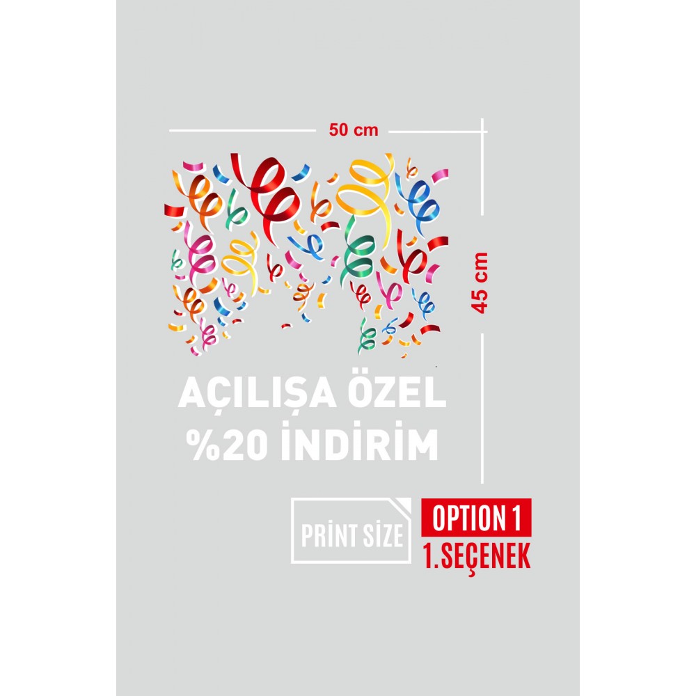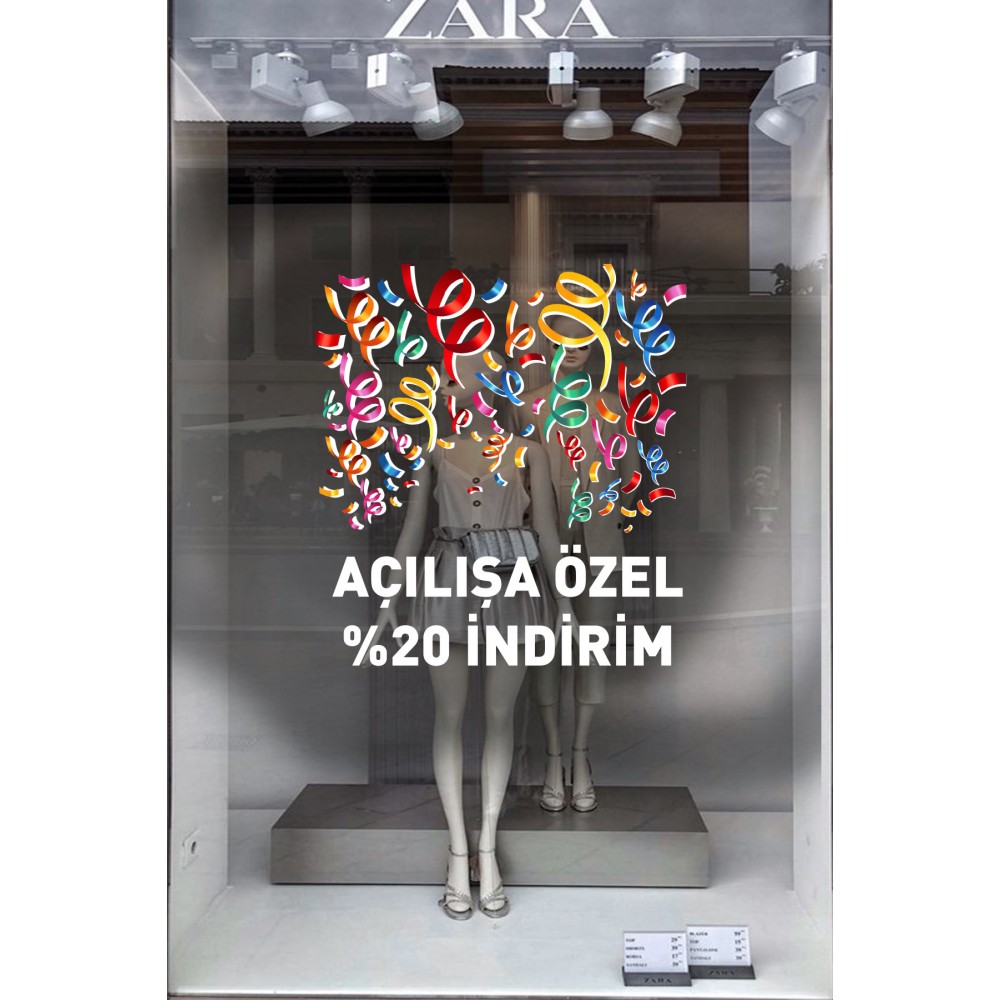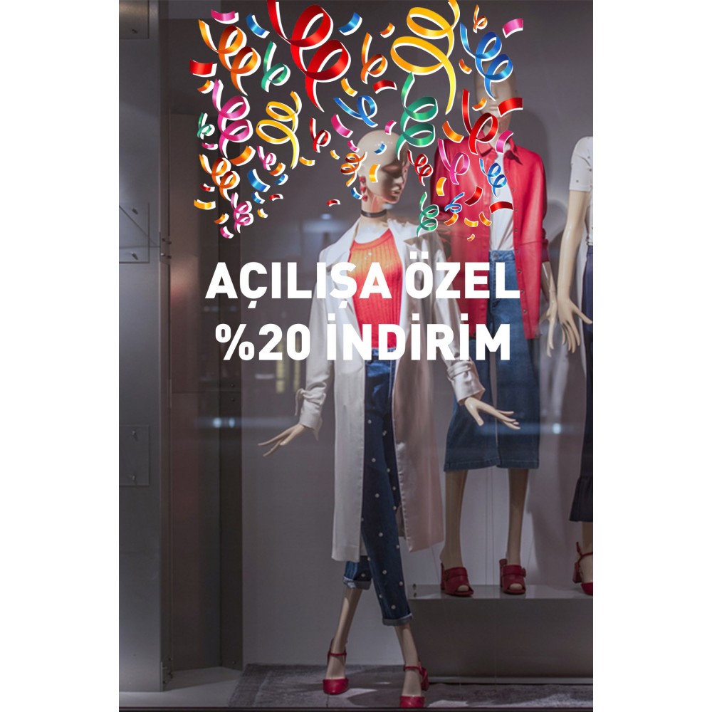 Rengerank Havada Uçuşan Kurdelalar ve İndirim Yazısı Vitrin Cam Stickerı