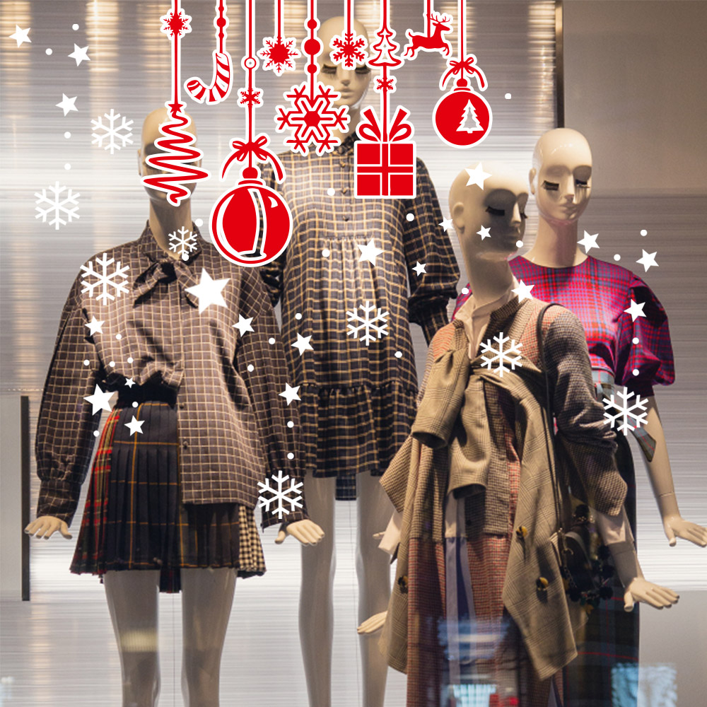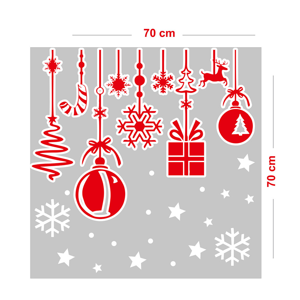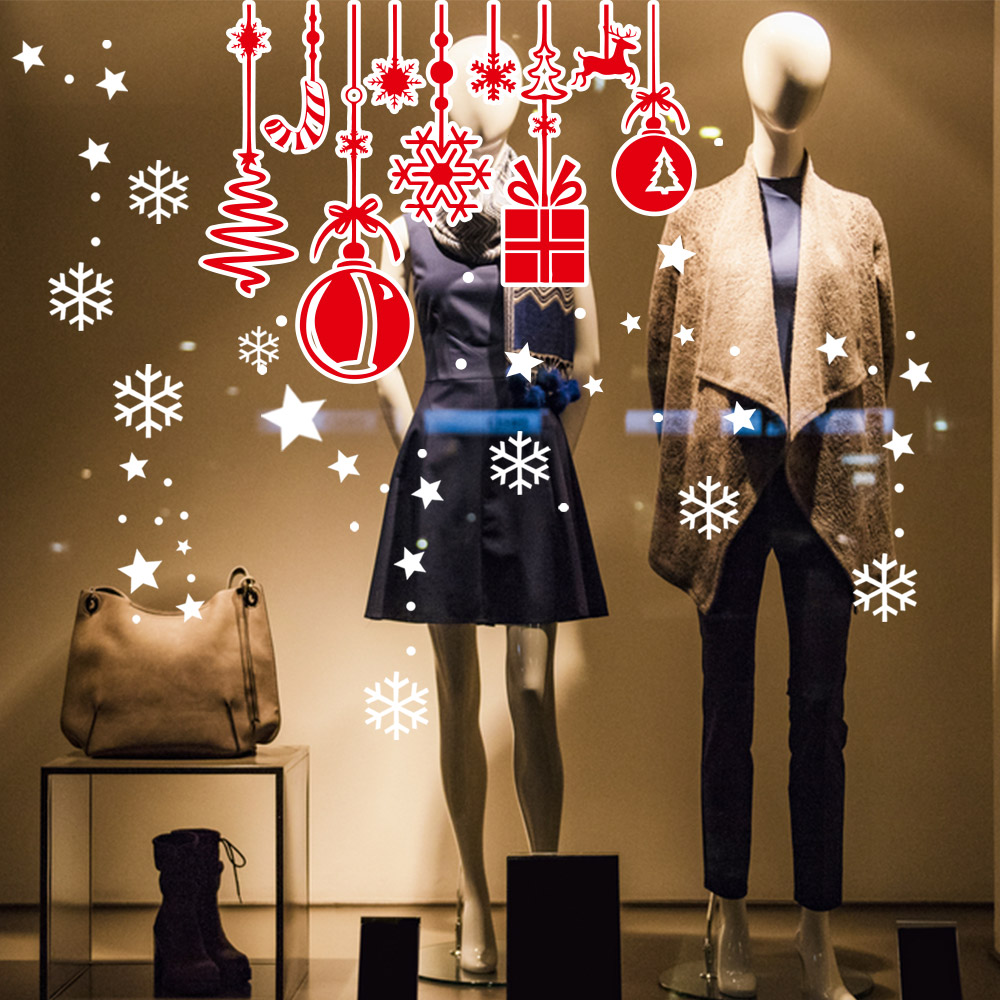 Salınan Hediye Kutusu Kar Tanesi ve Yılbaşı Ağacı Vitrin Süslemeleri Sticker 70x70cm Ev Vitrin Yılbaşı Stickerı