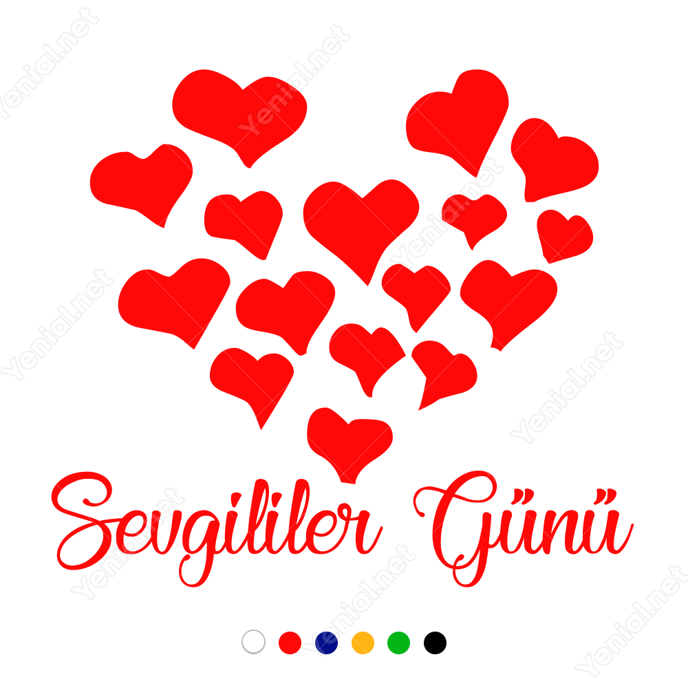 Sevgililer Günü Yazısı Kalpler 110x110cm Sticker Yapıştırma