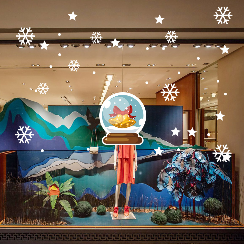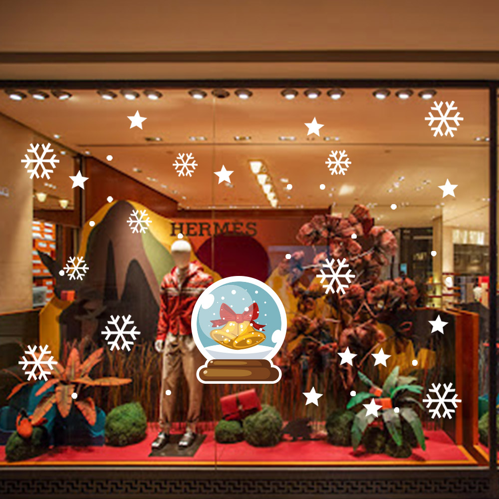 Sevimli Sihirli Ziller Kar Taneleri ve Yılbaşı Vitrin Stickerları 70x70cm Ev Vitrin Yılbaşı Stickerı