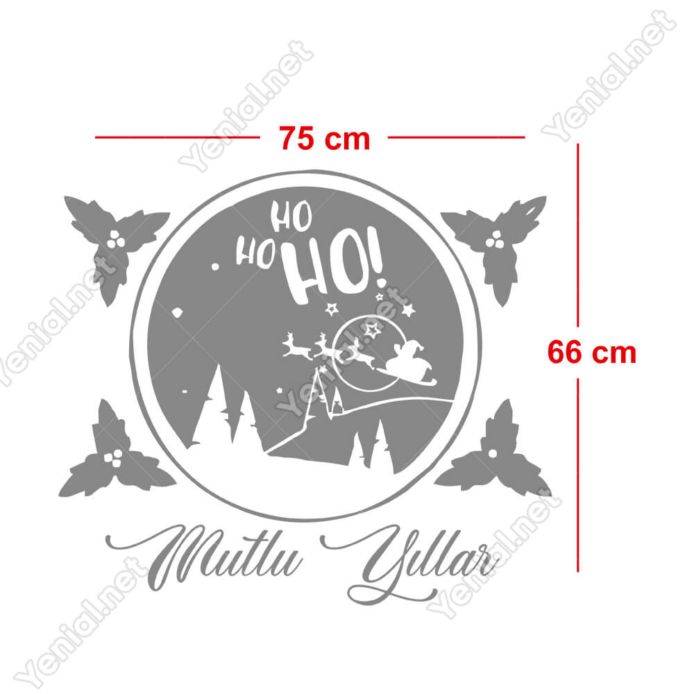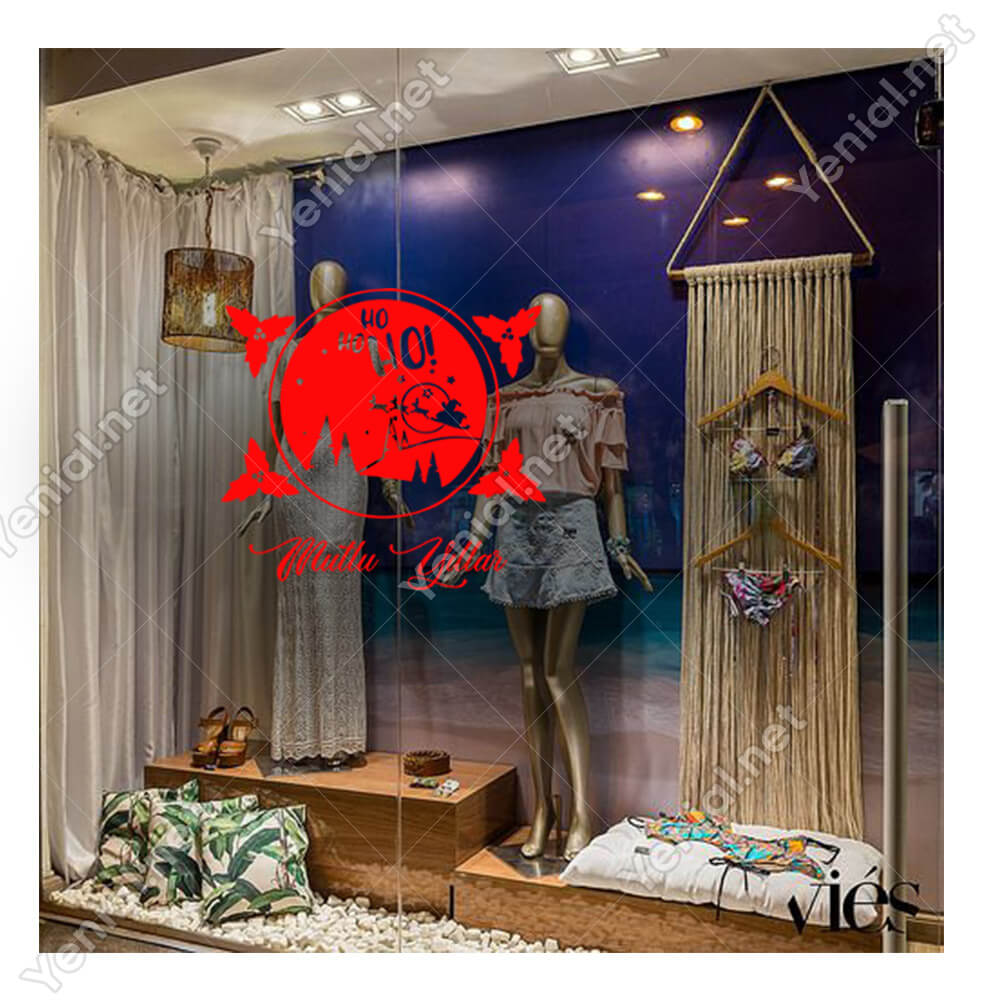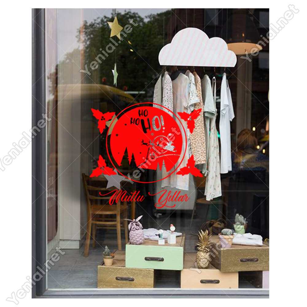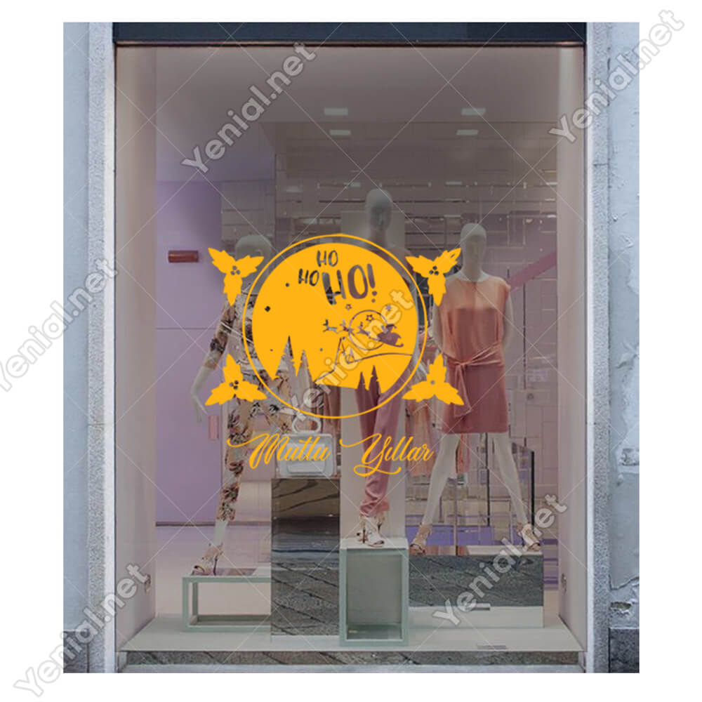 Silindir İçinde Geyik ve Ho ho Ho Mutlu Yıllar Yazısı Yılbaşı Süslemeleri Ev Vitrin Yılbaşı Stickerı