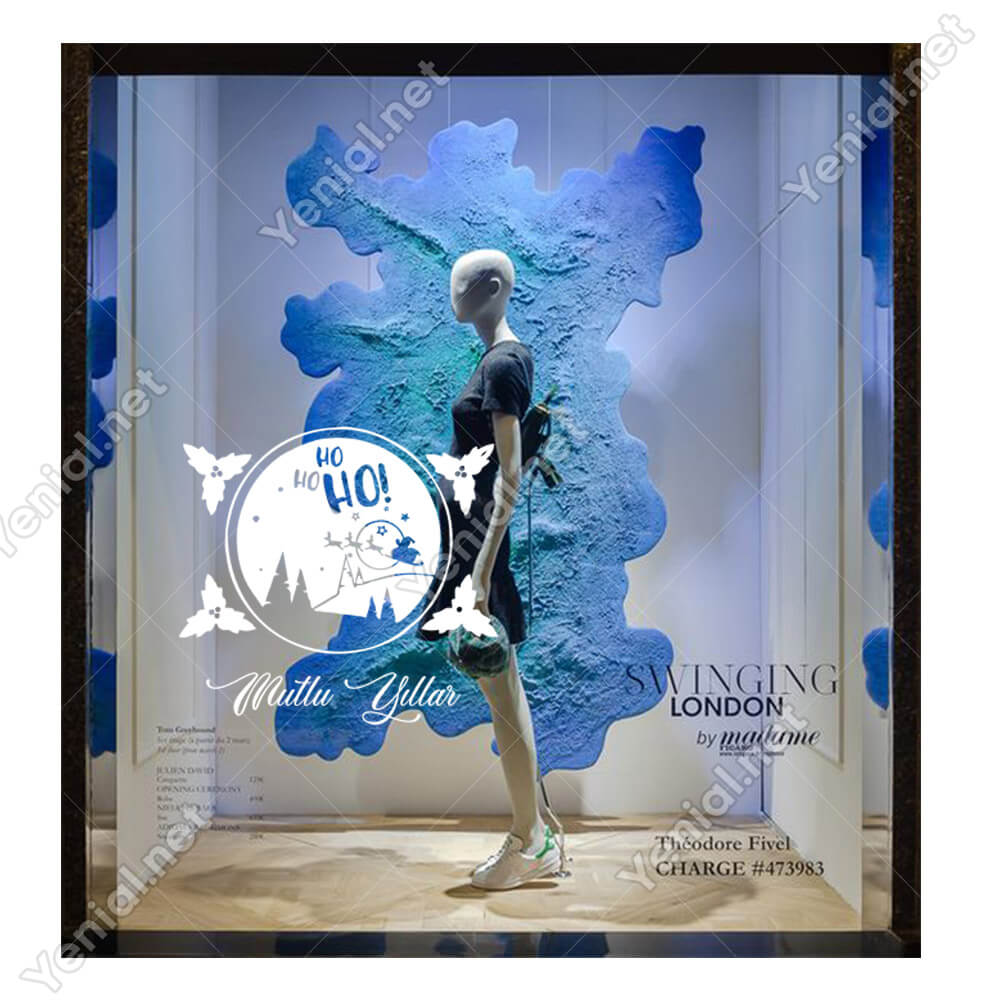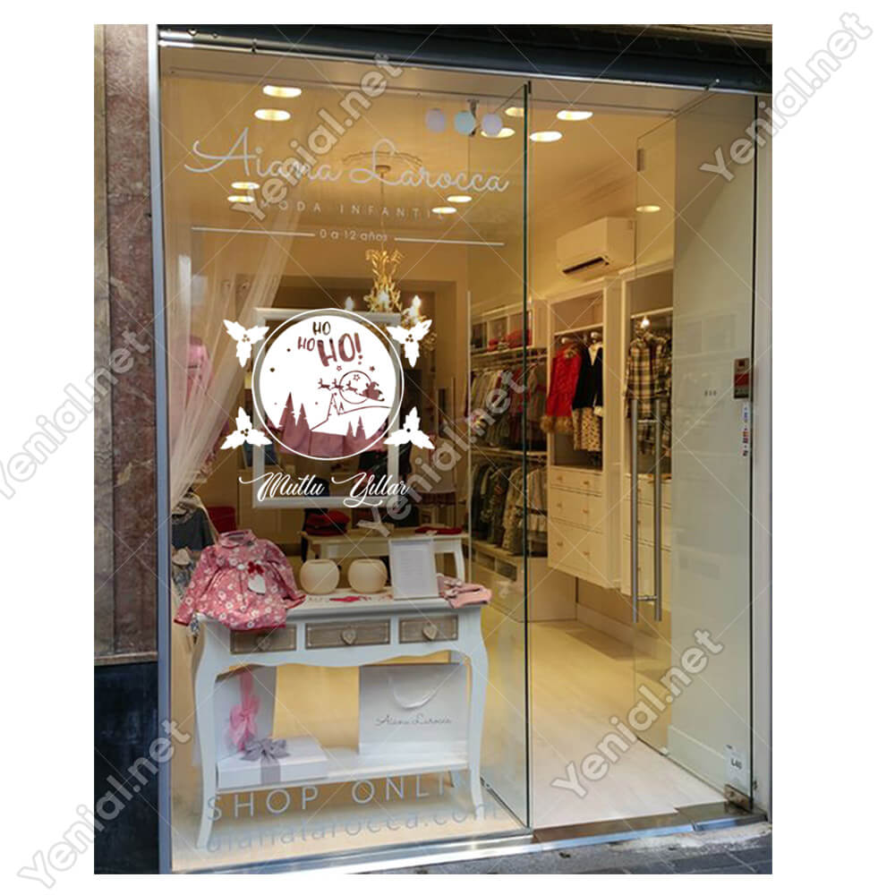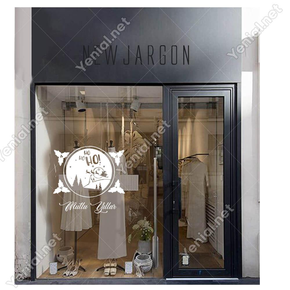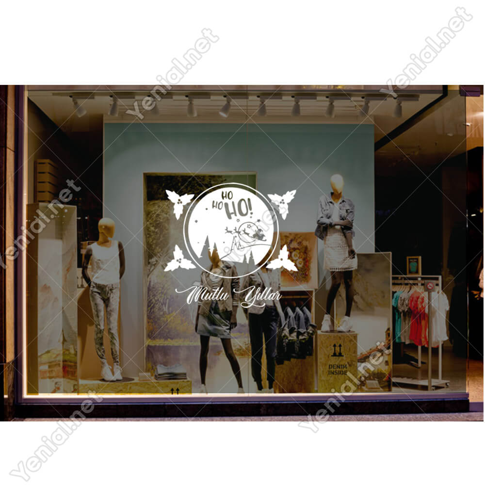 Silindir İçinde Geyik ve Ho ho Ho Mutlu Yıllar Yazısı Yılbaşı Süslemeleri Ev Vitrin Yılbaşı Stickerı