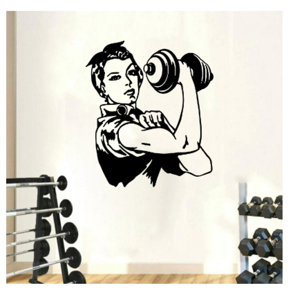 Spor Salonlarına Özel Retro Kadın Duvar Yazısı Cam Vitrin Sticker Yapıştırma