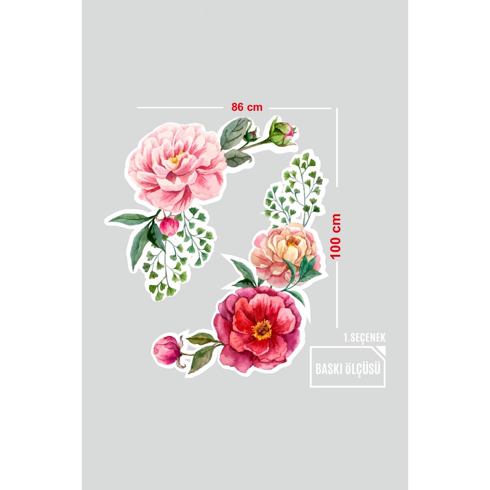 Sulu Boya Efektli Pembe ve Kırmızı Gül Renkli Vitrin Cam Stickerı