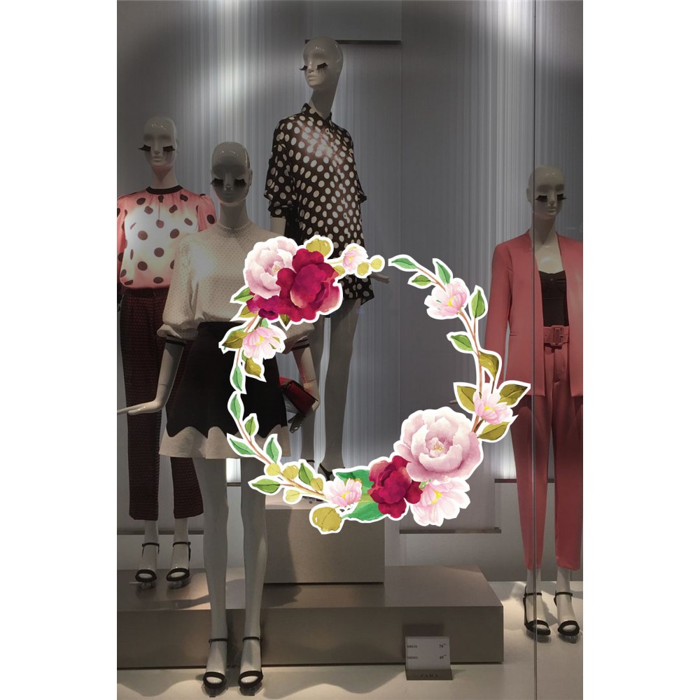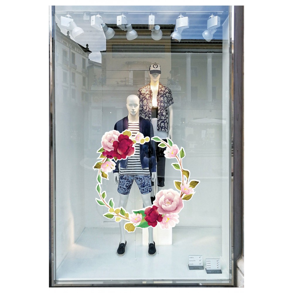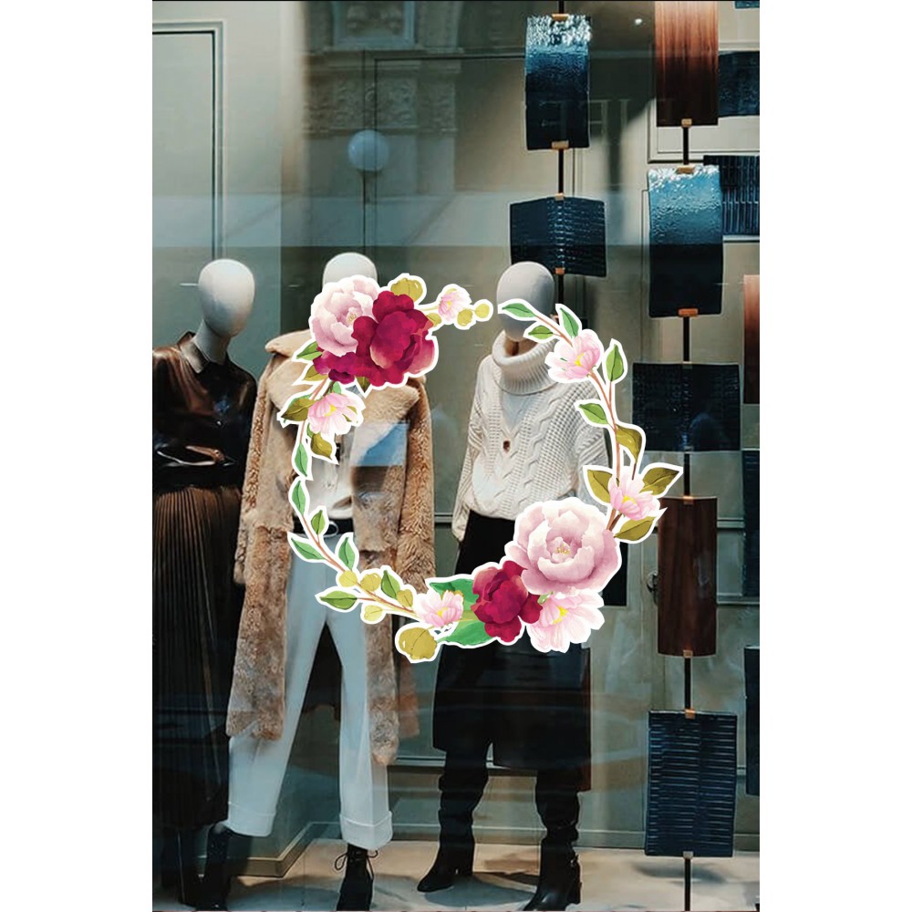 Taç Şeklinde Çiçekler Vitrin Tacı ve Mağaza Vitrin Cam Stickerı