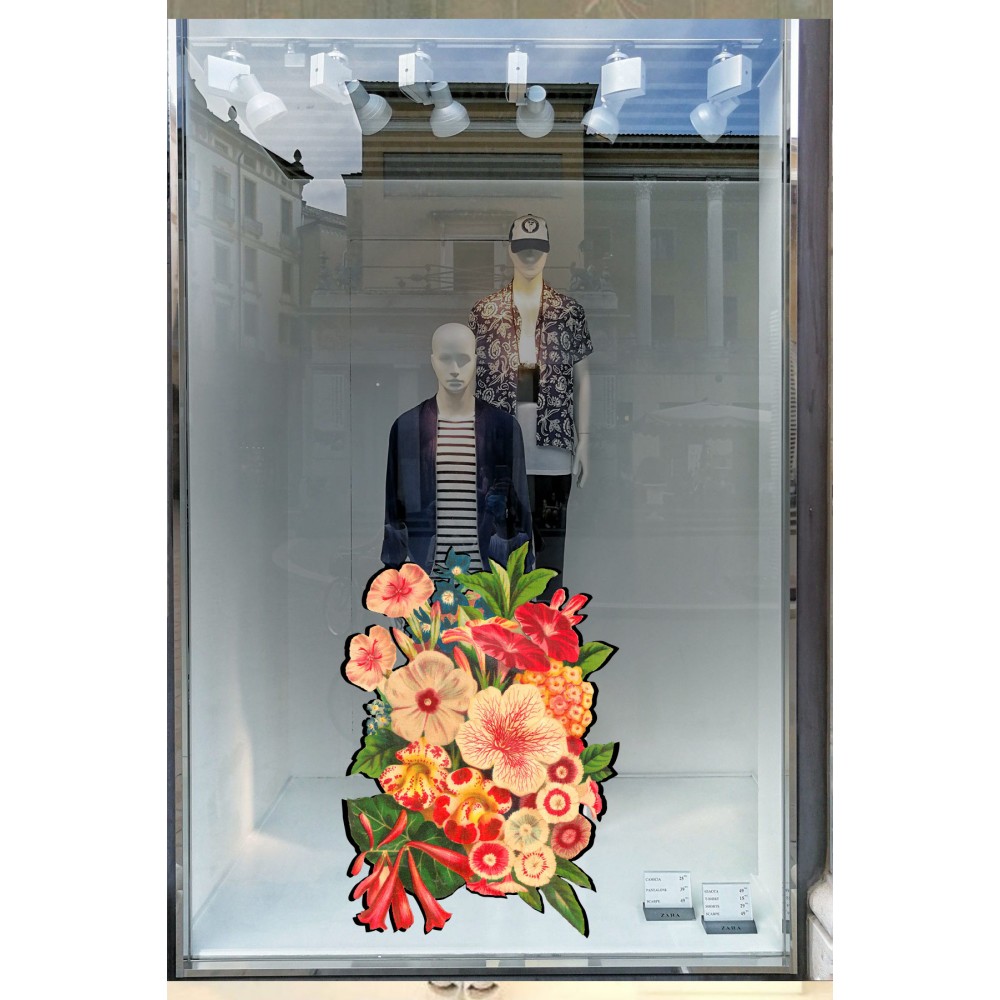 Tropikal Çiçek Demeti Vitrin Tacı Mağaza Vitrin Cam Stickerı