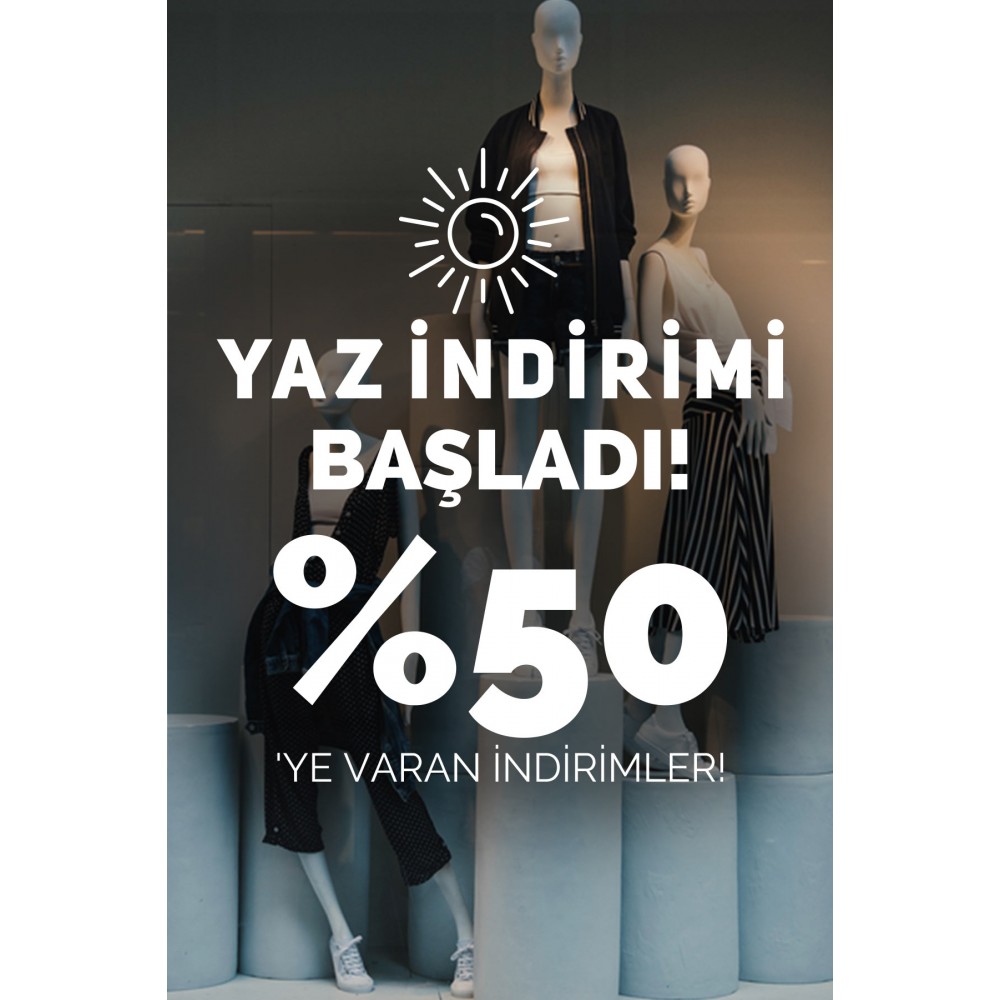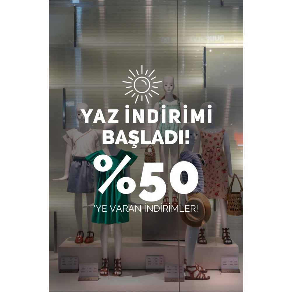 Yaz İndirimi Başladı %50'ye Varan İndirimler Yazısı Mağaza Vitrin Stickerı