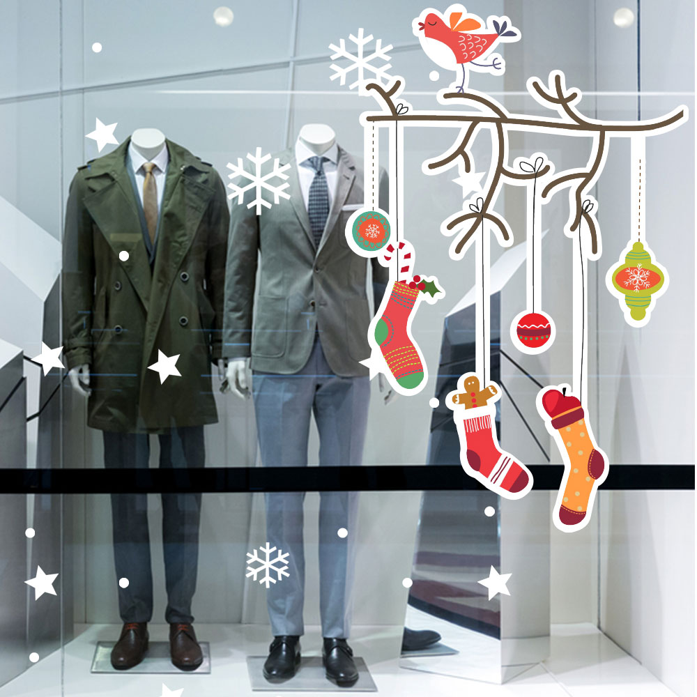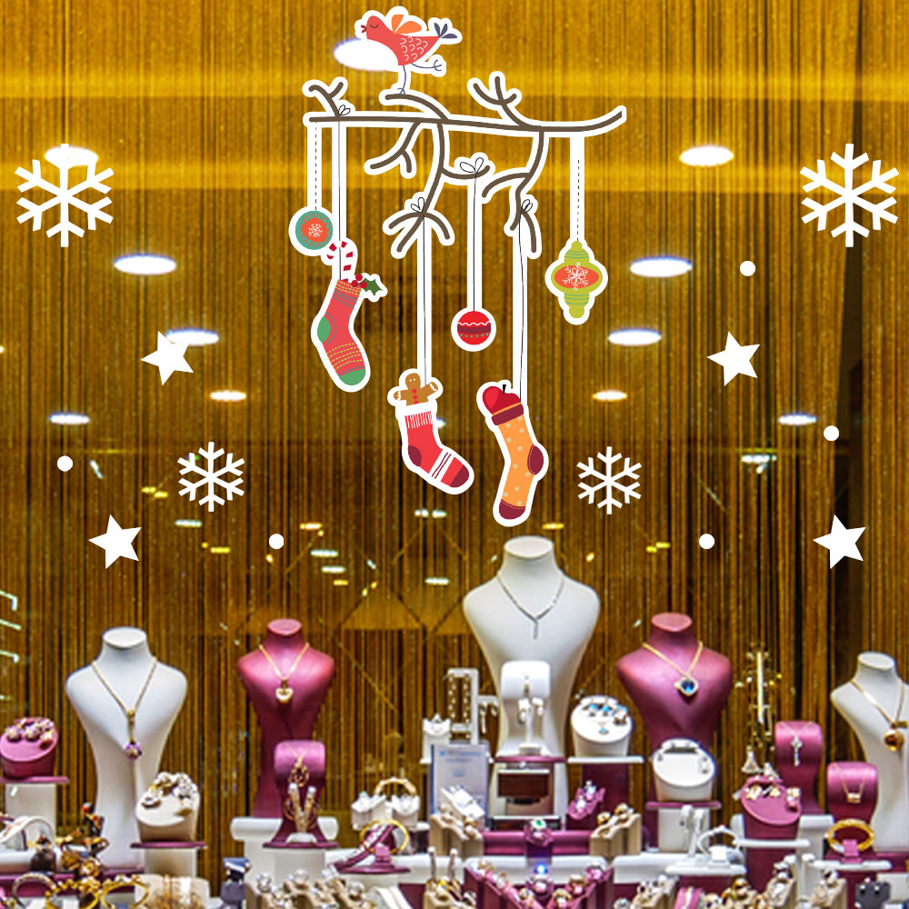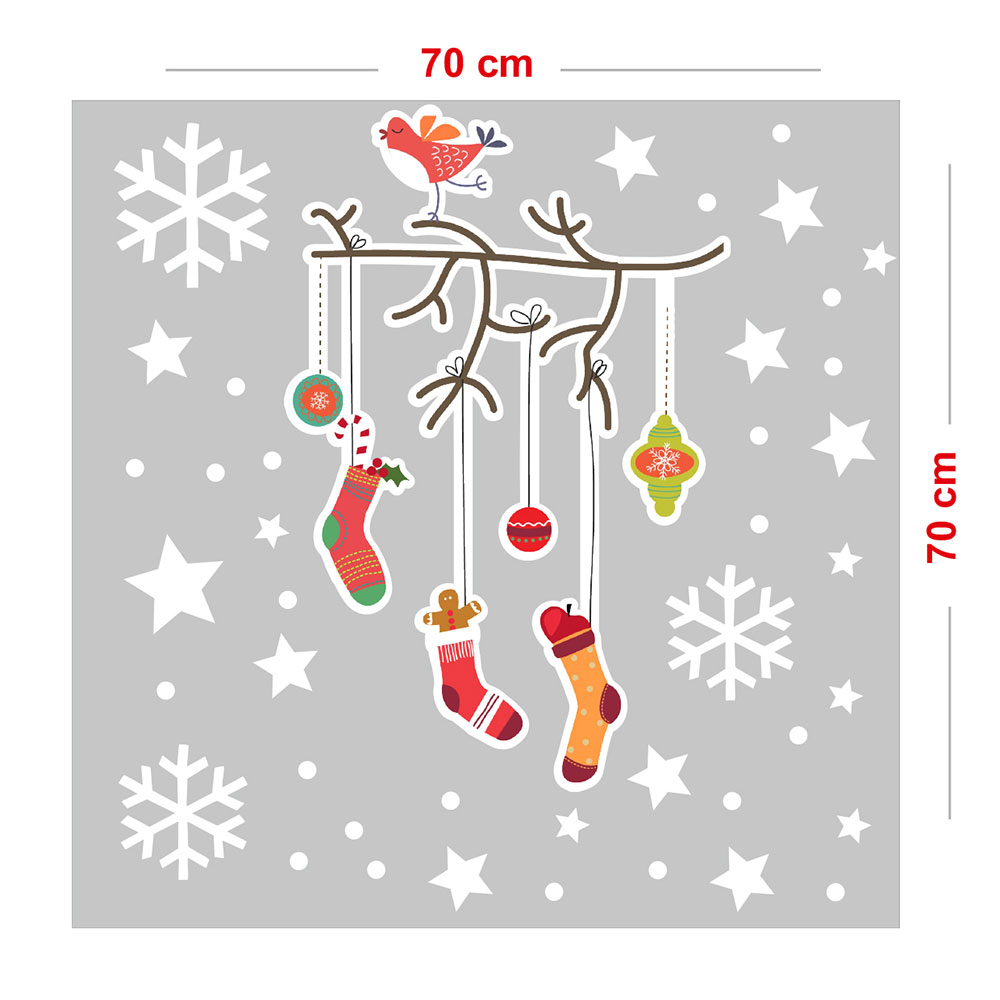 Yılbaşı Ağacı Dalından Sallanan Çoraplar Yılbaşı Vitrin Süslemeleri Sticker Ve Yapıştırma 70x70cm Ev Vitrin Yılbaşı Stickerı