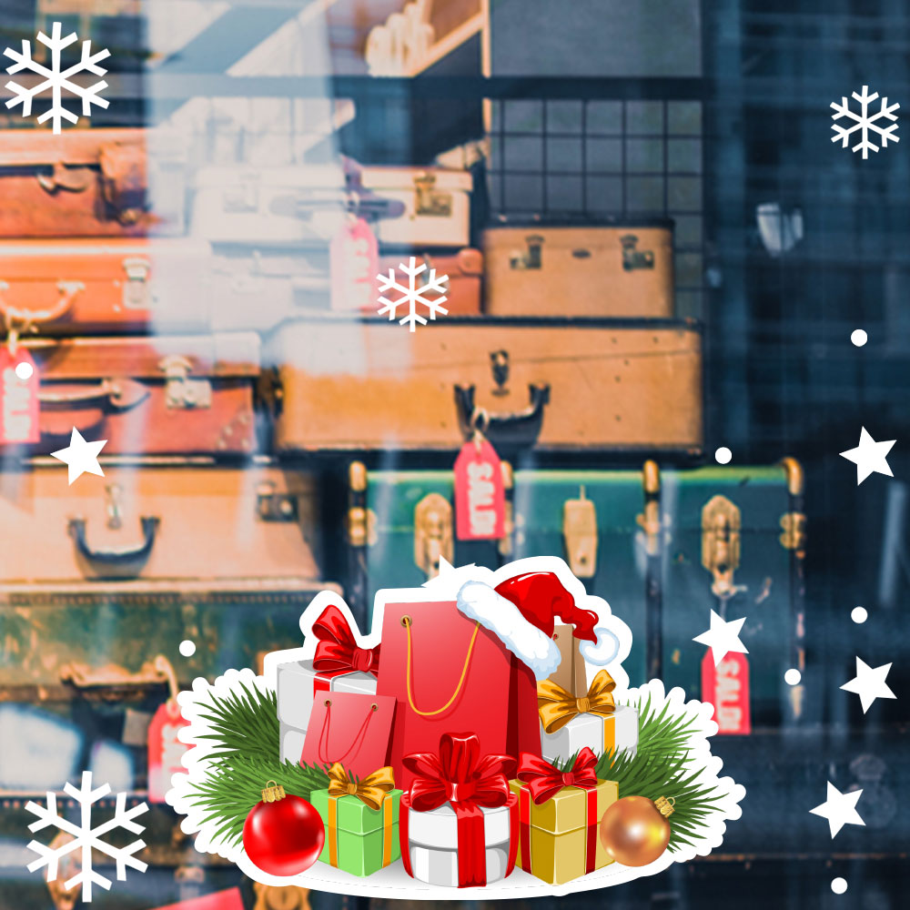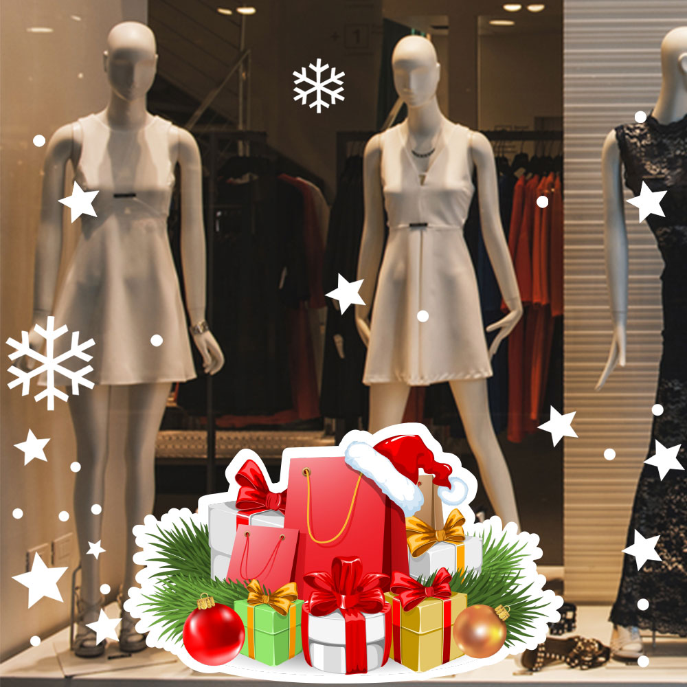 Yılbaşı Hediye Paketleri ve Kar Taneleri Vitrin Sticker Yapıştırma 70x70cm Ev Vitrin Yılbaşı Stickerı