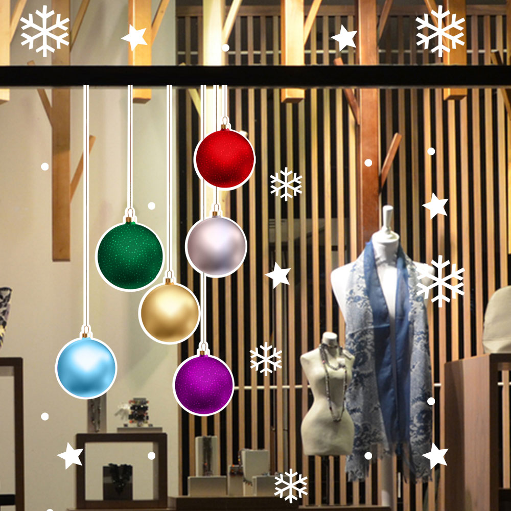 Yılbaşı Renkli Salınan Süsleme Topları Yılbaşı Vitrin Sticker 70x70cm Ev Vitrin Yılbaşı Stickerı