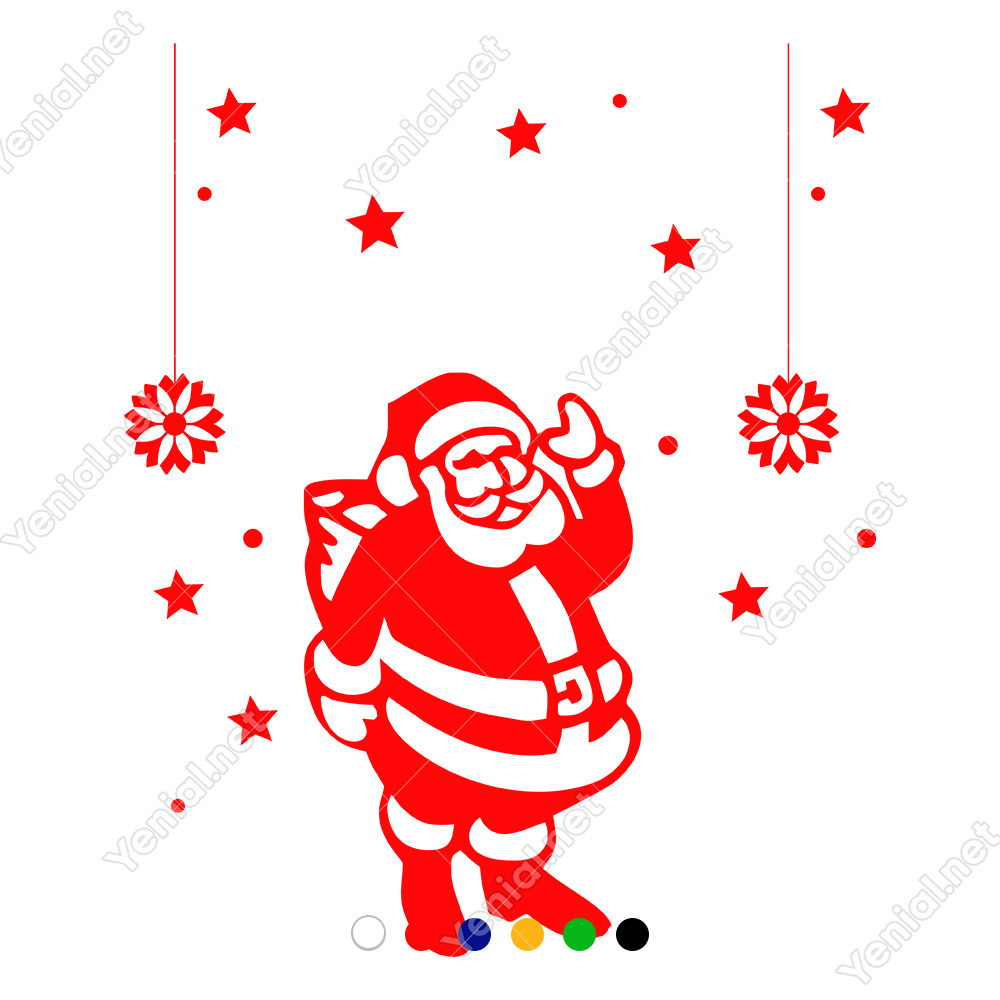 Yılbaşı Süslemeleri Yıldız ve Noel Baba Stickerları 115x88cm Ev Vitrin Yılbaşı Stickerı