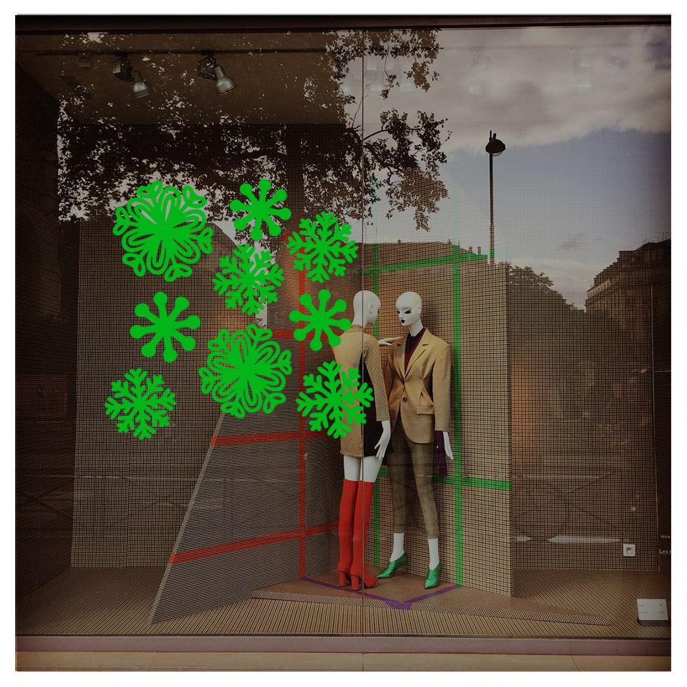 Yılbaşı Süslemesi Farklı Farklı Kar Taneleri Sticker Yapıştırma 115x115cm