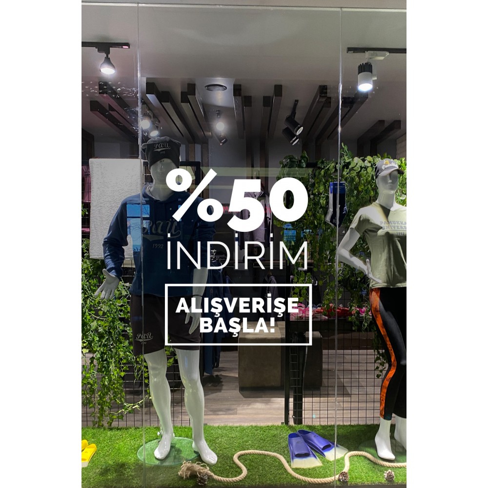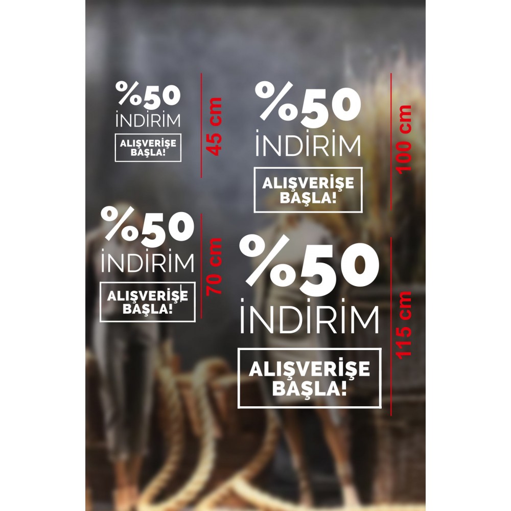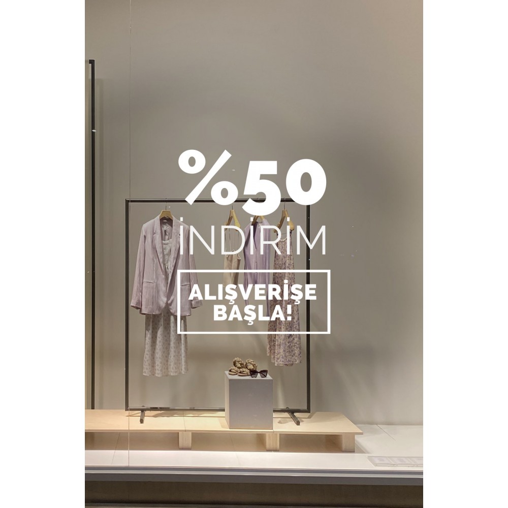 Yüzde % 50 İndirim Alışverişe Başla Yazısı Butik Mağaza Vitrin Stickerı